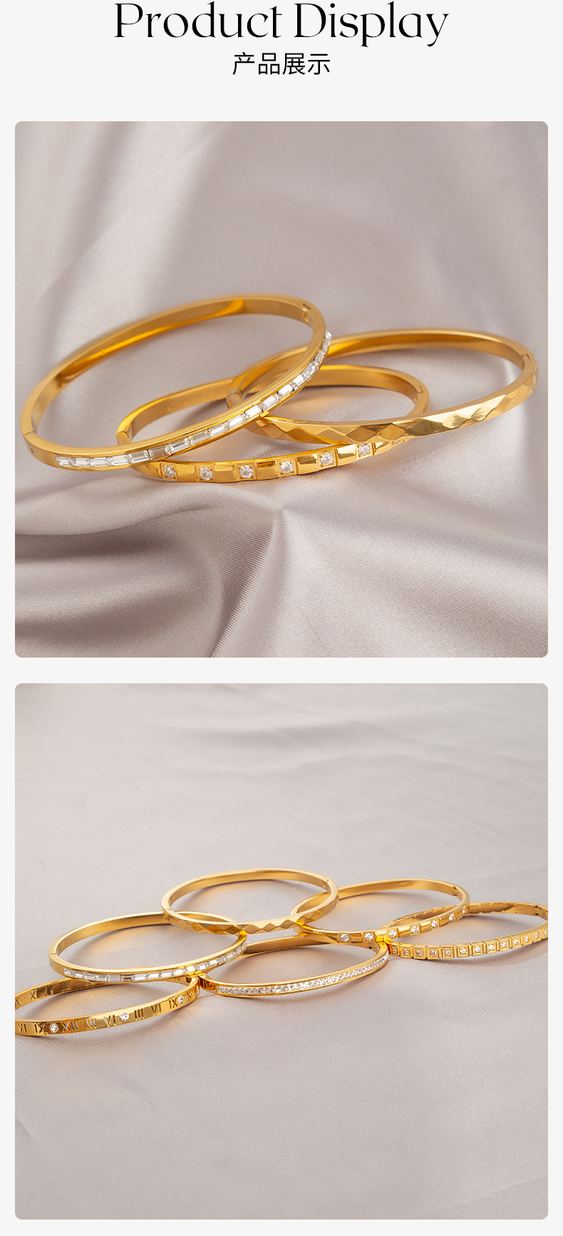 half circle white zircon inlaid bracelet