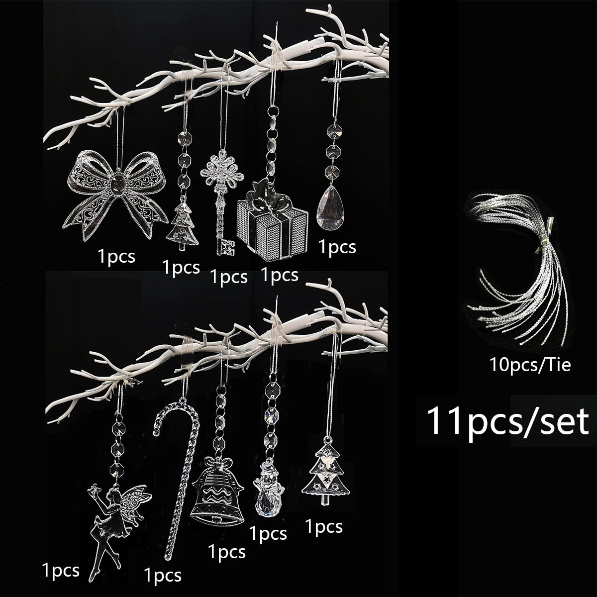 a suit: snowflake beads string suit (10 pieces in each set, 2 pieces in each style, matching ribbon)