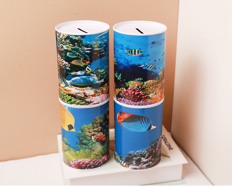 Introduction: There are a total of 4 styles, with comprehensive printing of marine life patterns on the front, back, left, and right. The patterns are beautifully and delicately printed, with superior craftsmanship. It is a good quality product that is both beautiful and affordable. It is a toy, gift, and savings jar that is very popular with both domestic and international audiences.