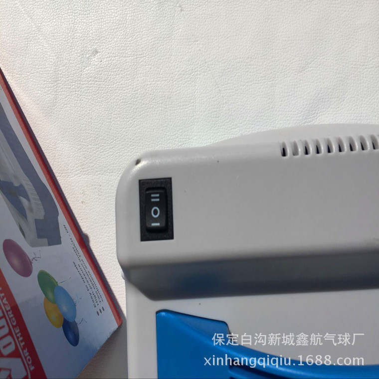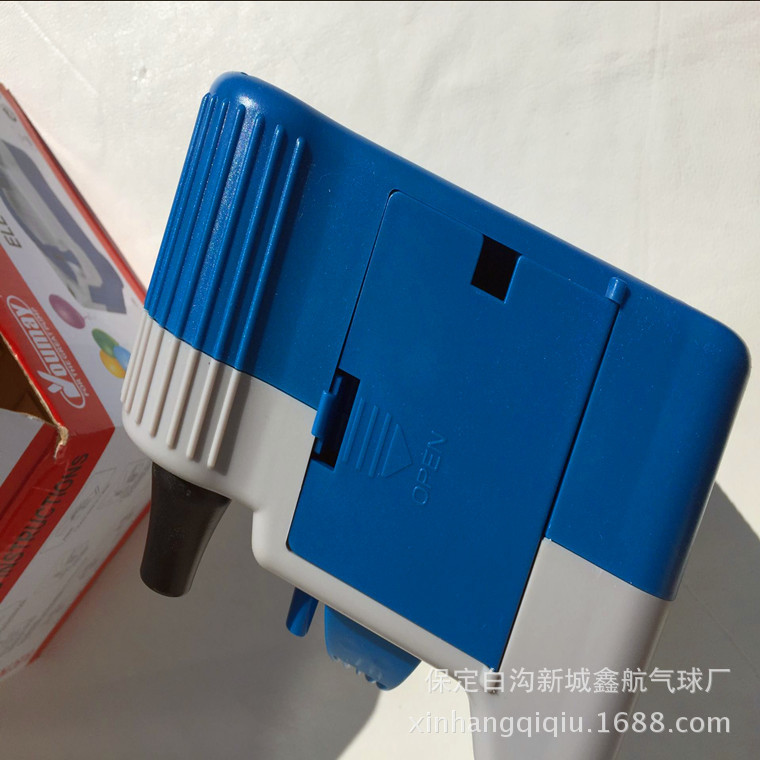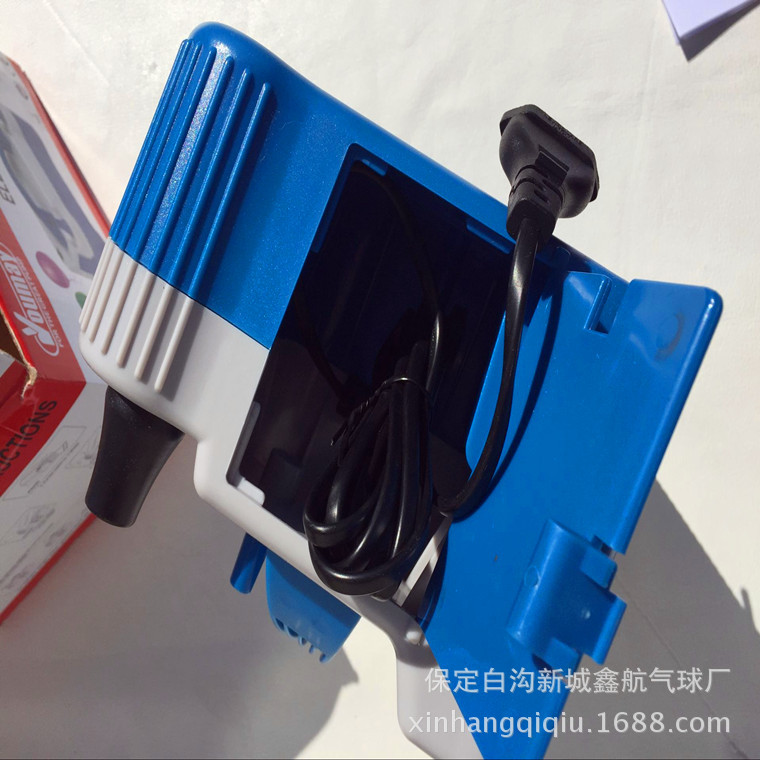 This product has been improved based on the original balloon pump. The electric wire cover of the air pump is set in the form of a door, which does not need to be removed, and there are no air vents around the air pump, thus preventing the air pump from attracting the surrounding balloons into the motor, which could lead to the motor not working normally. There are two inflatable openings, which are press-type, and are equipped with two movable air nozzles. The two small nozzles are located at the handle part (lower than the handle), which prevents the air pump from being damaged during transportation.