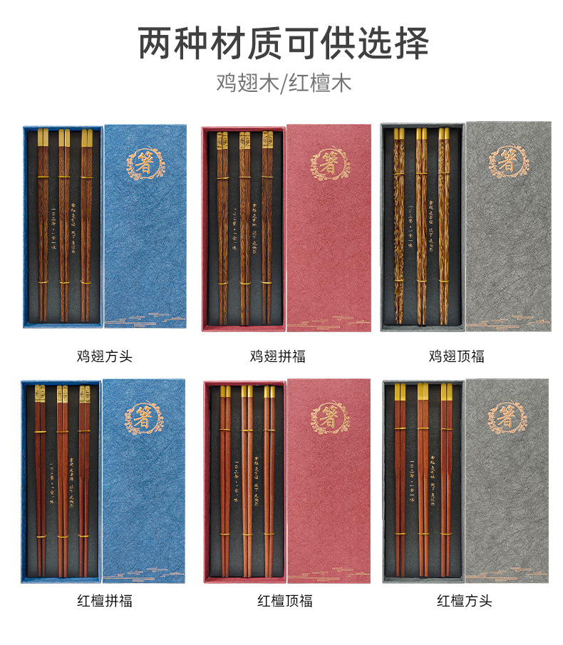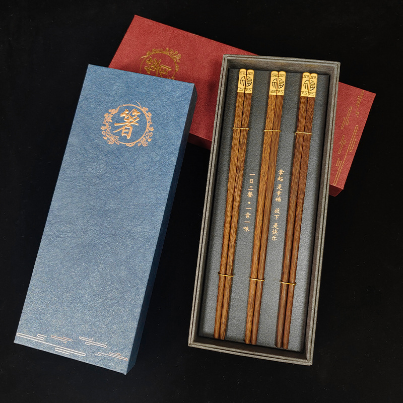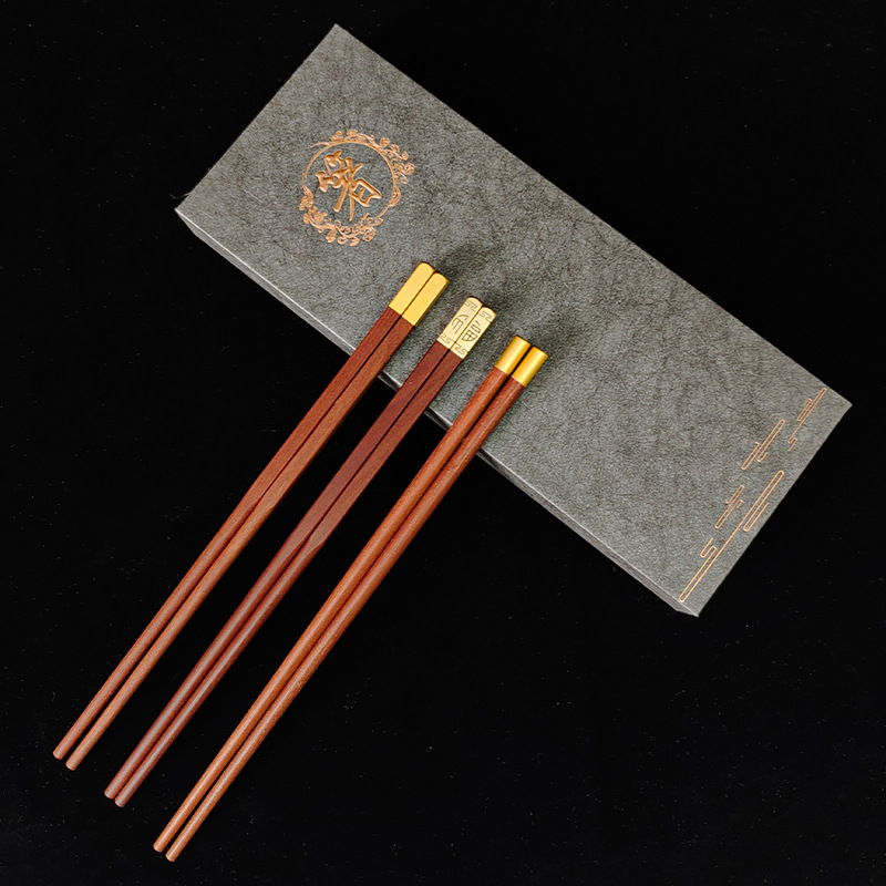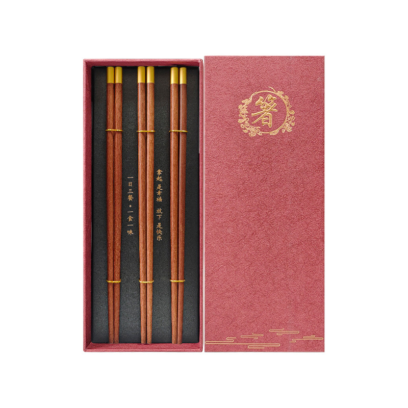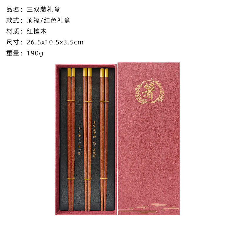3 pairs of dingfu red sandalwood chopsticks (red chopsticks gift box)