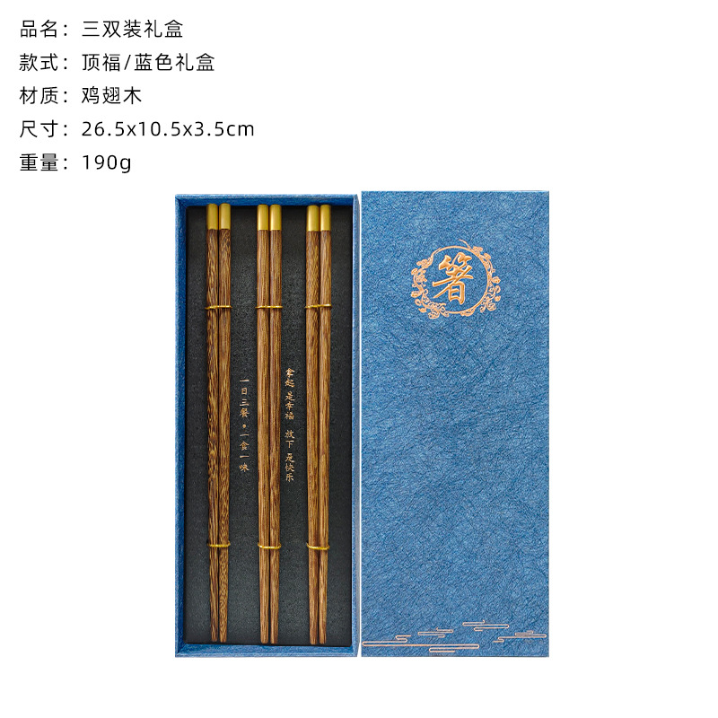 3 pairs of blessing red ebony chopsticks (blue chopsticks gift box)