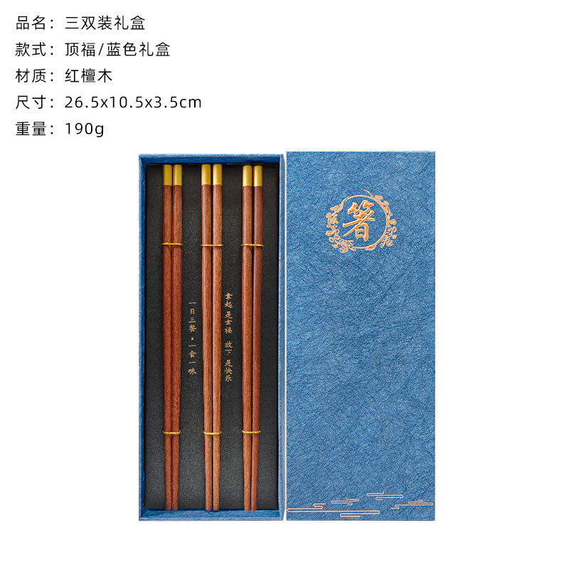 dingfu red sandalwood chopsticks 3 pairs (blue chopsticks gift box)