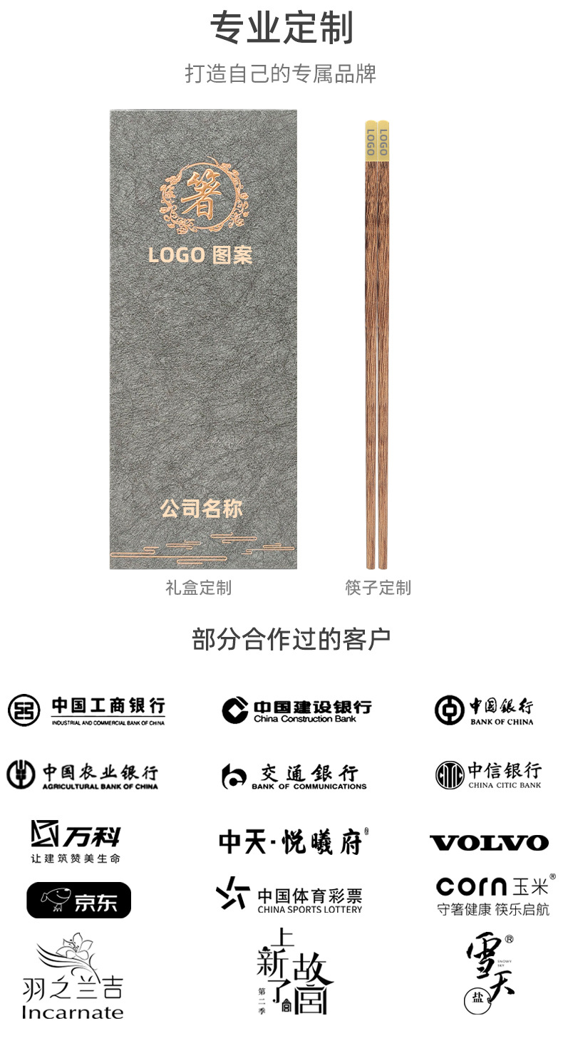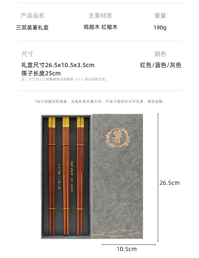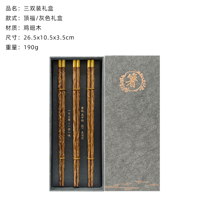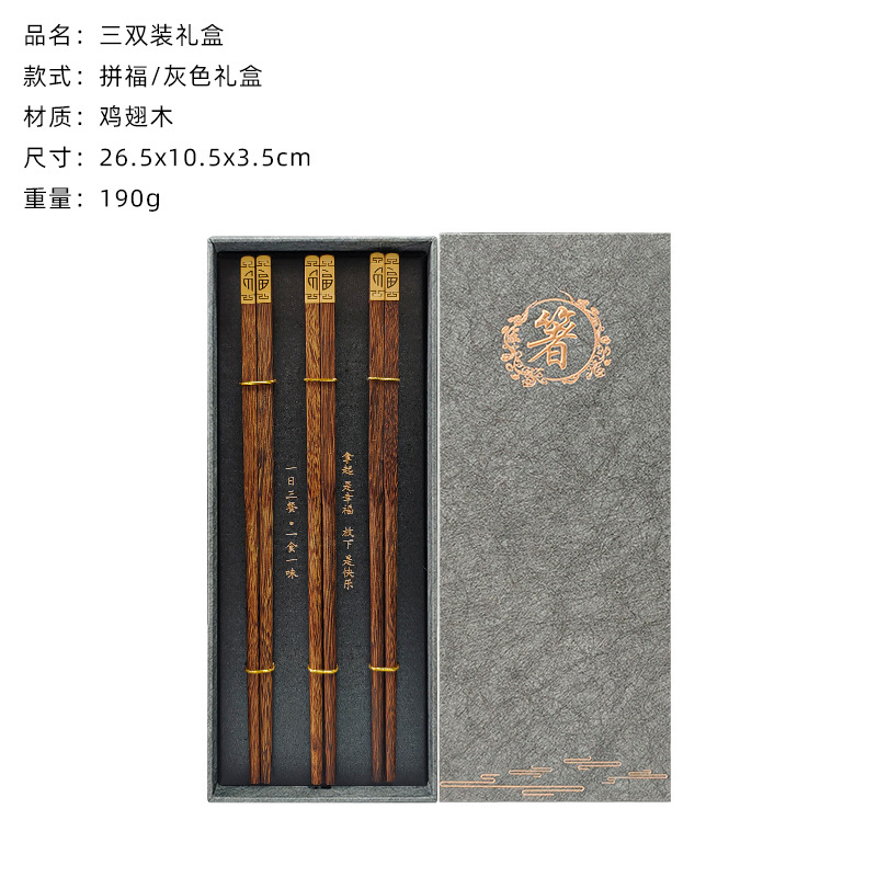 3 pairs of blessing red ebony chopsticks (gray chopsticks gift box)