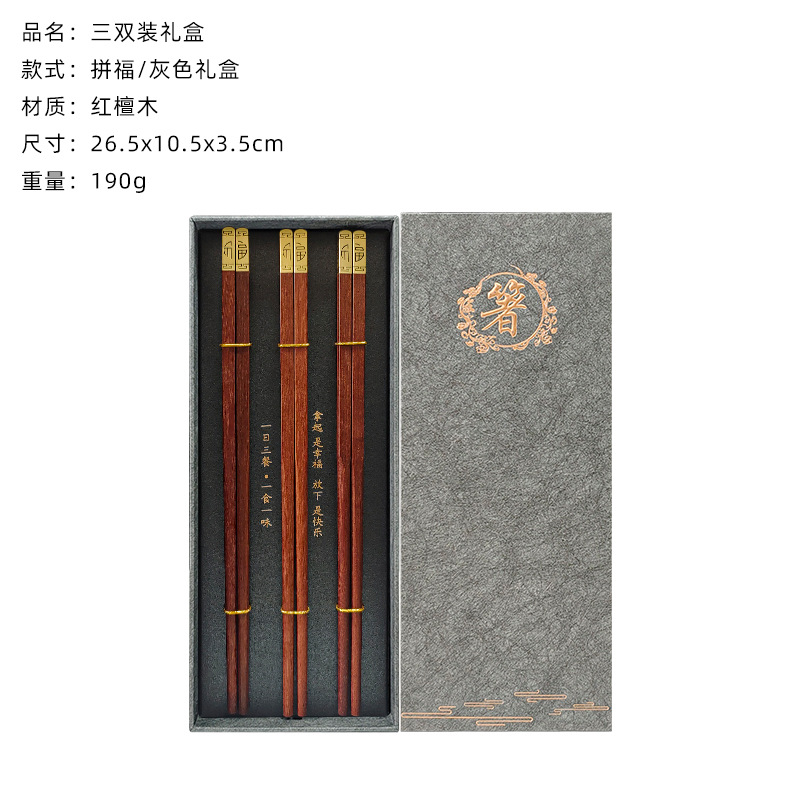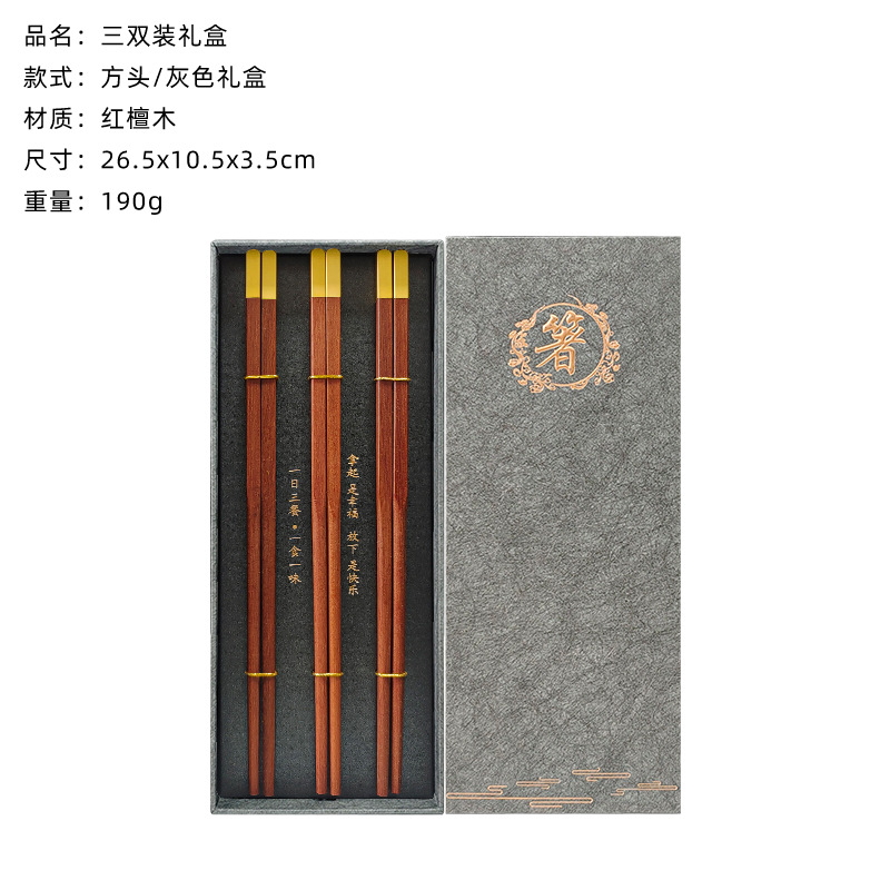square head red sandalwood chopsticks 3 pairs (gray chopsticks gift box)