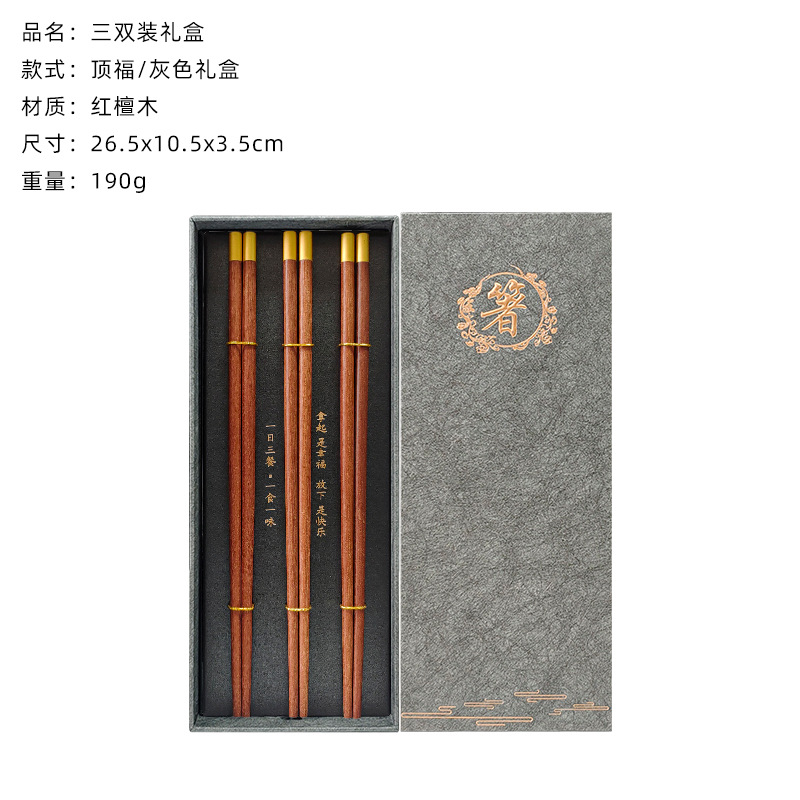 dingfu red sandalwood chopsticks 3 pairs (gray chopsticks gift box)