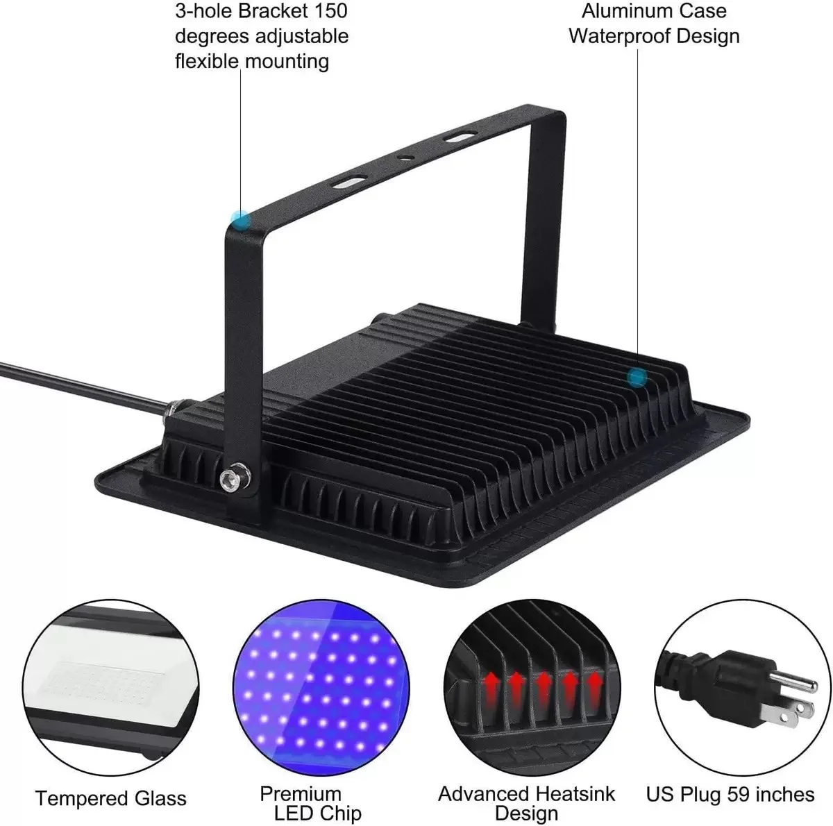 2.Waterproof and Weatherproof: This UV flood outdoor lamp is rated IP66, offering excellent resistance to water and dust ingress. It is perfect for use in various outdoor settings, including stage lighting, disco, and commercial applications, where it can withstand weather conditions and environmental changes.