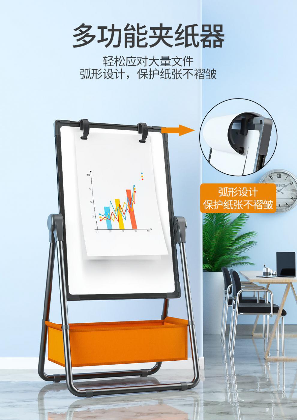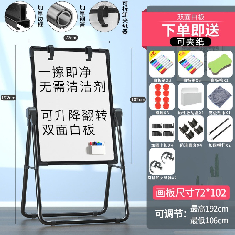 double-sided whiteboard with paper clip function installation-free-72*102 foldable thickened bracket