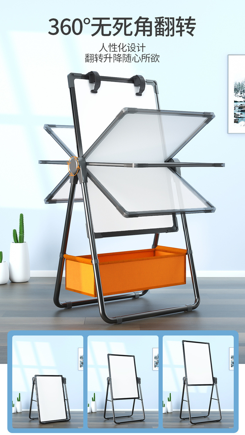 double-sided whiteboard with paper clip function... installation-free-62*92... foldable... thickened bracket