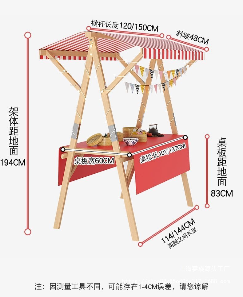 120*60*200-red and white ceiling cloth + red and white tablecloth with colorful lights