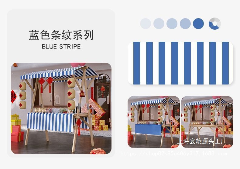 120*60*200-blue and white ceiling cloth + blue and white tablecloth with colorful lights