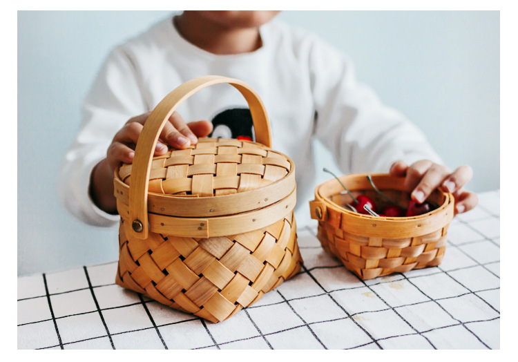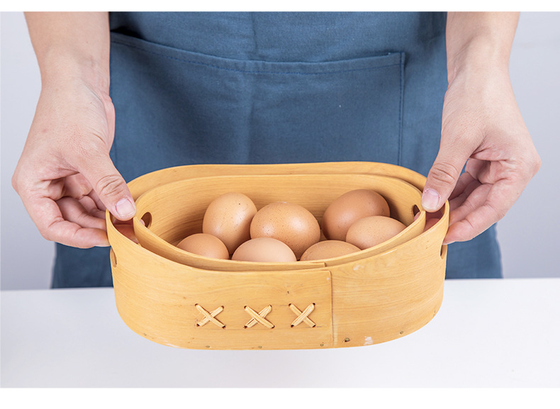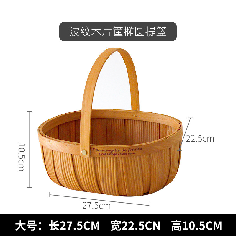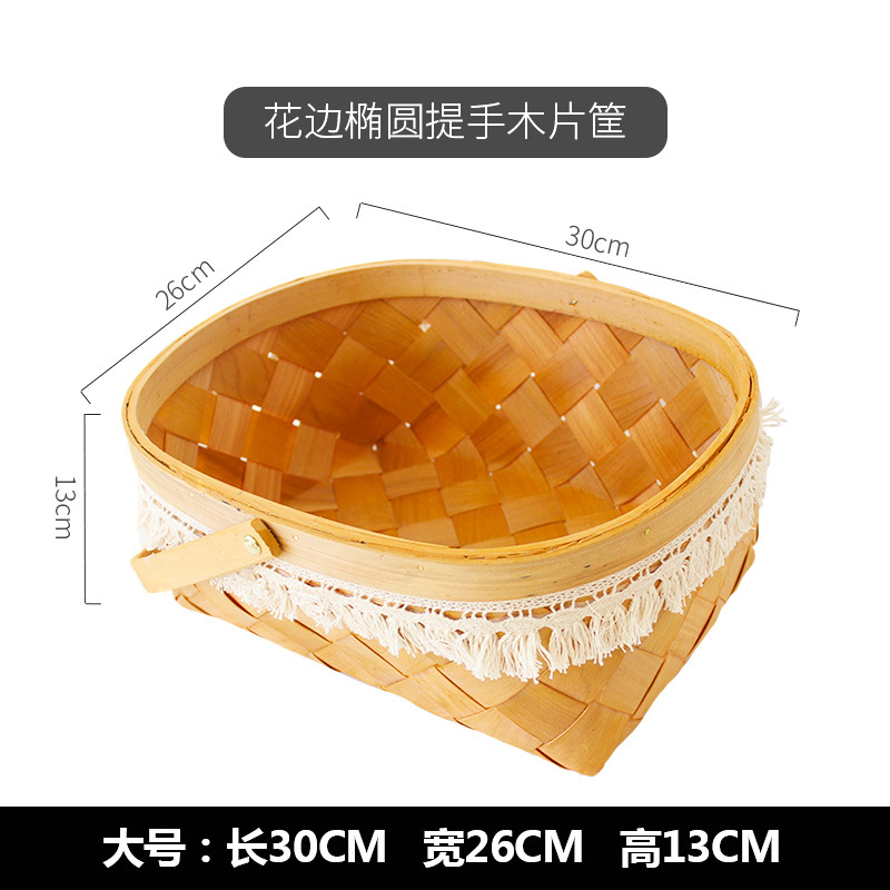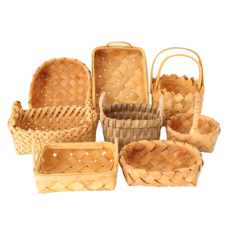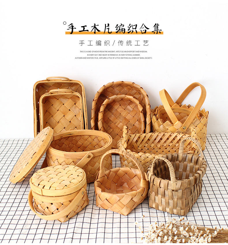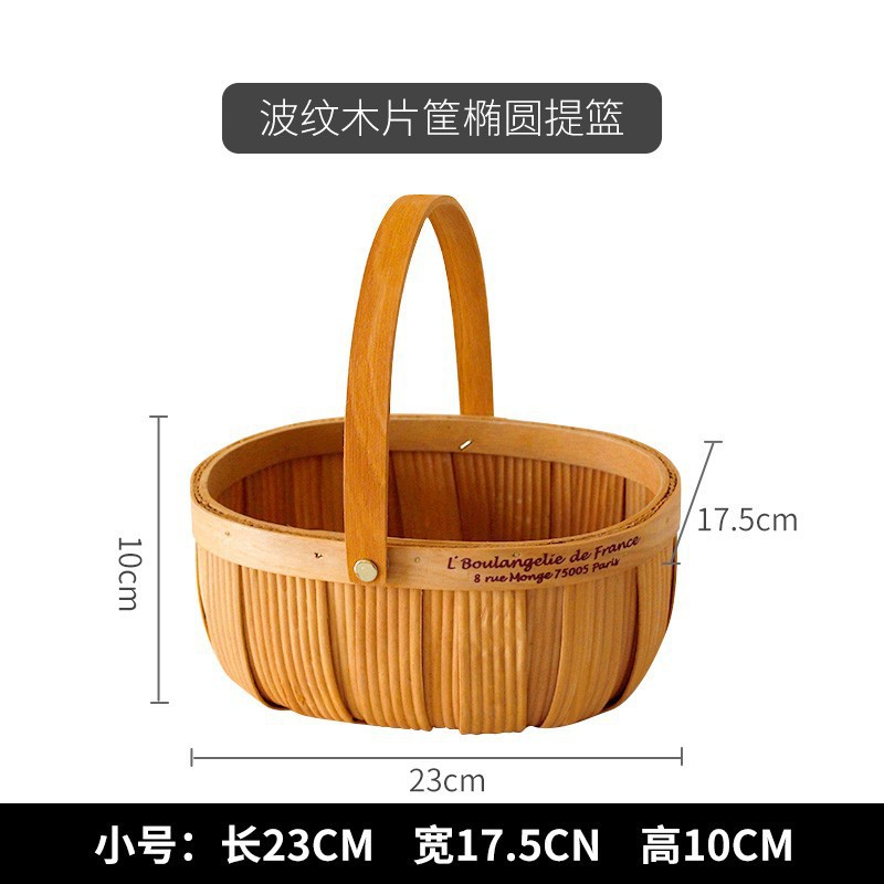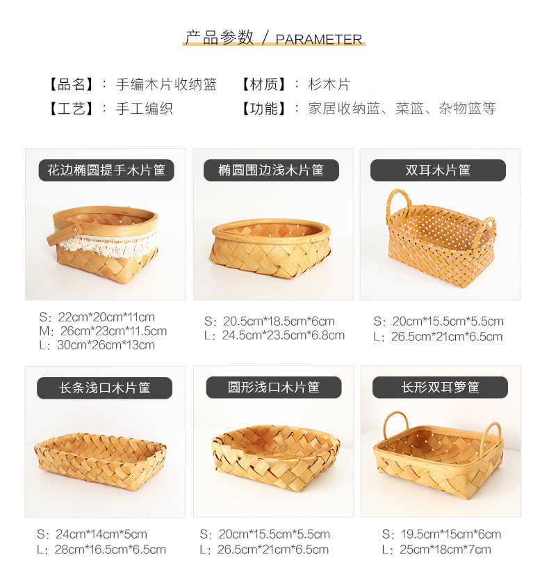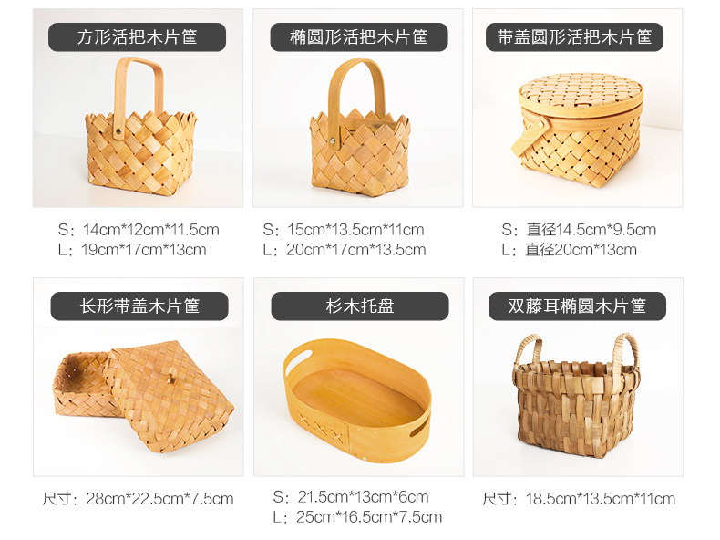 long shallow mouth wood piece basket small size + large combination