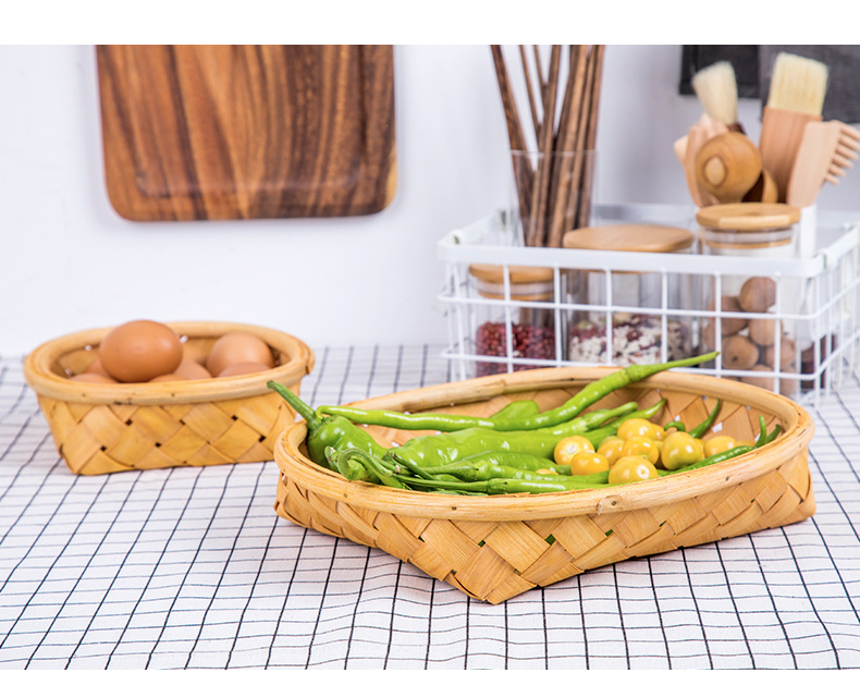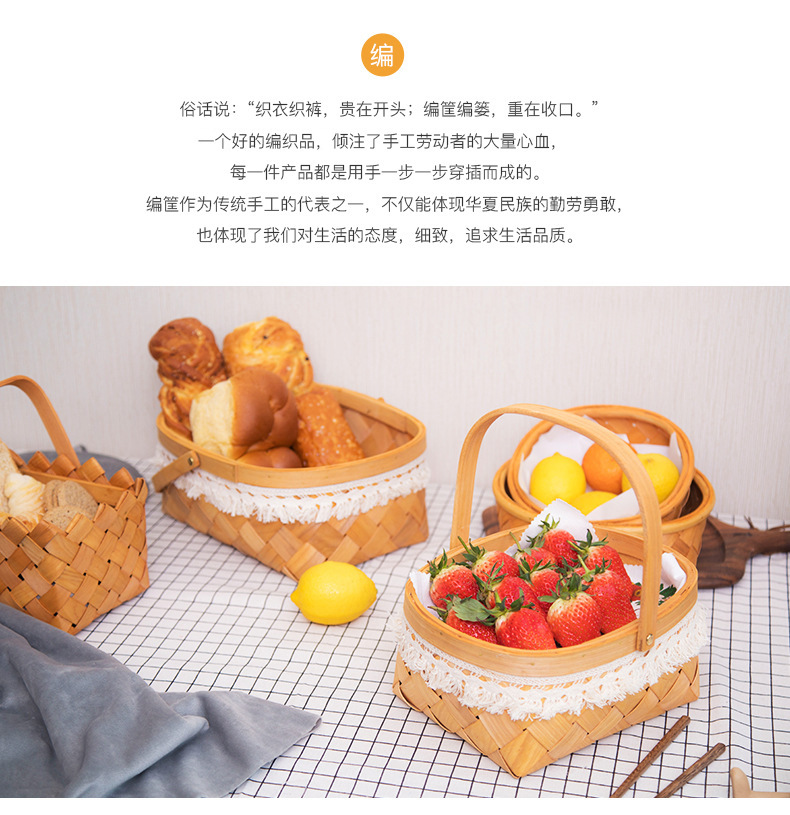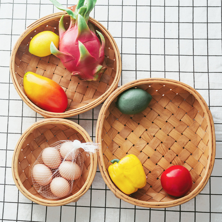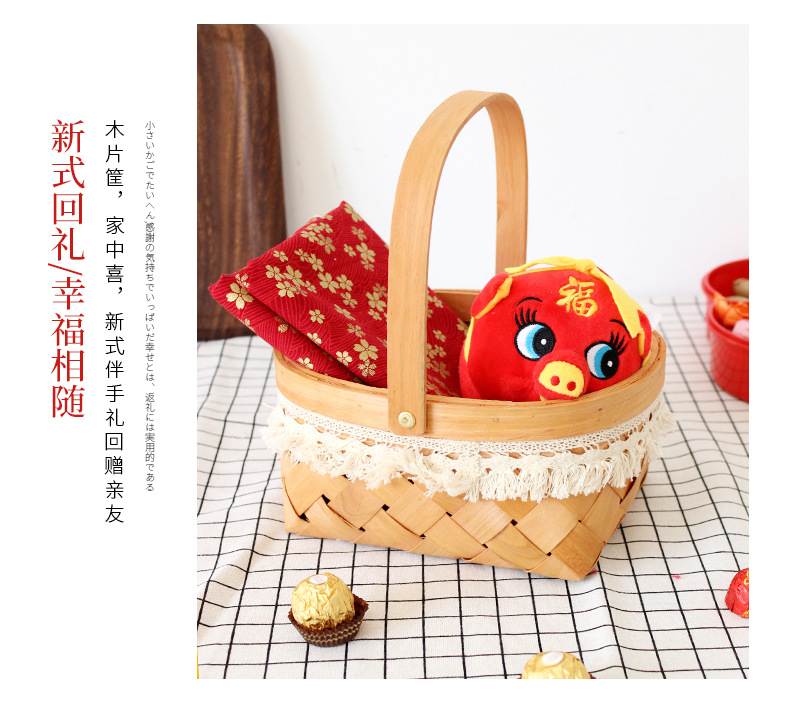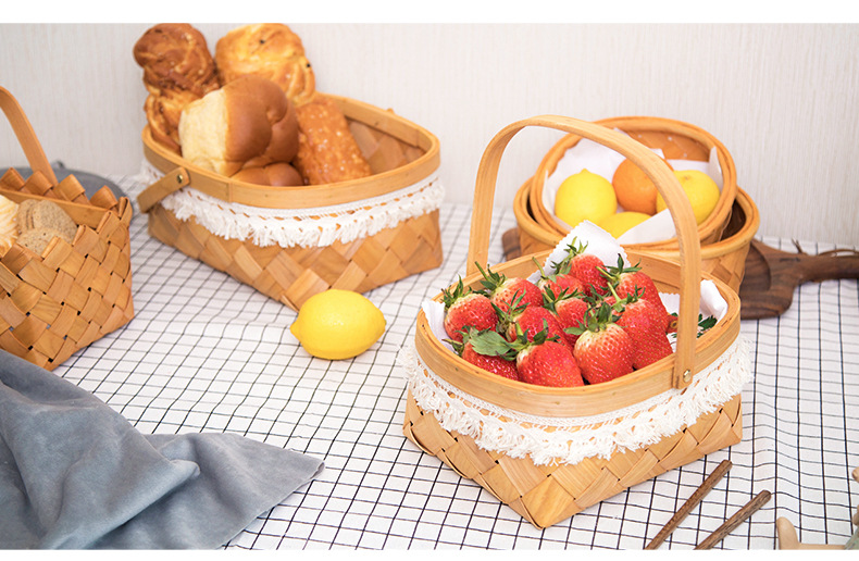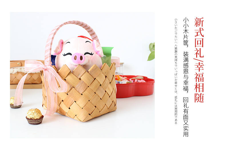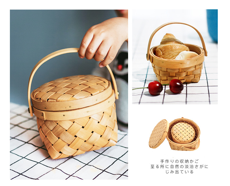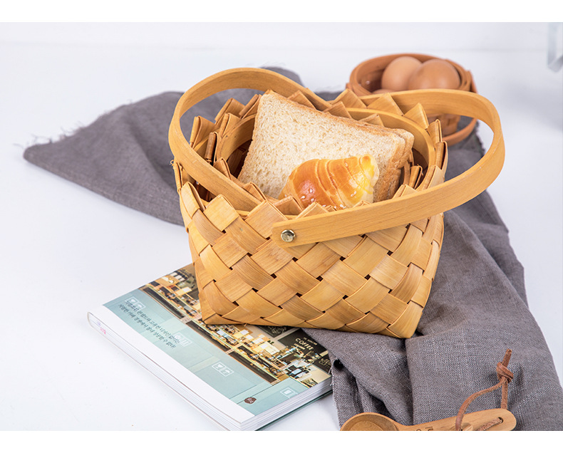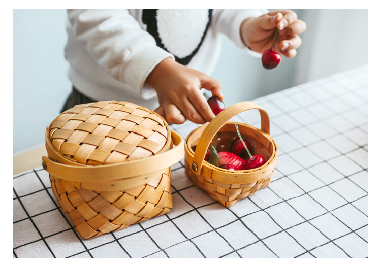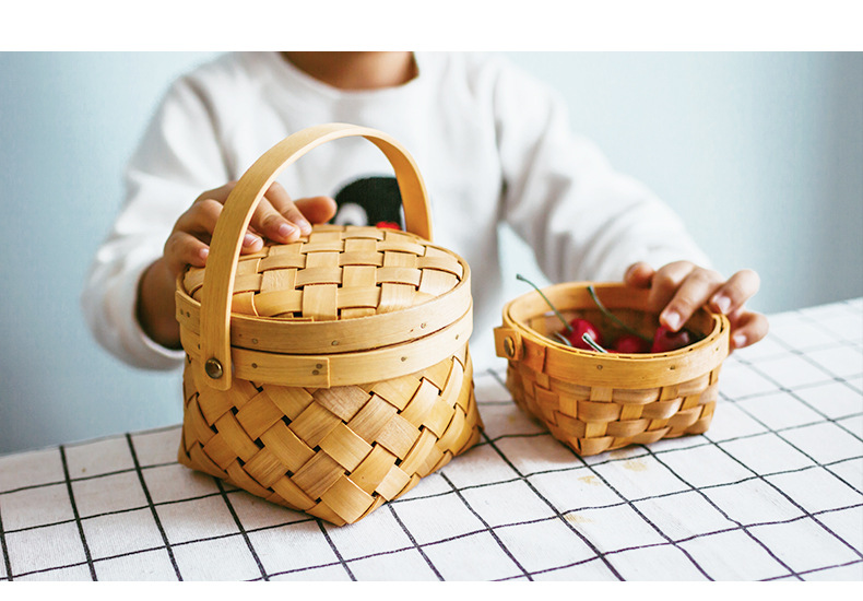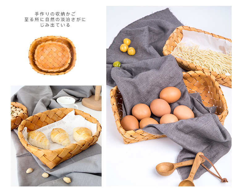long shallow mouth wood piece basket small size + large combination