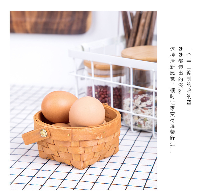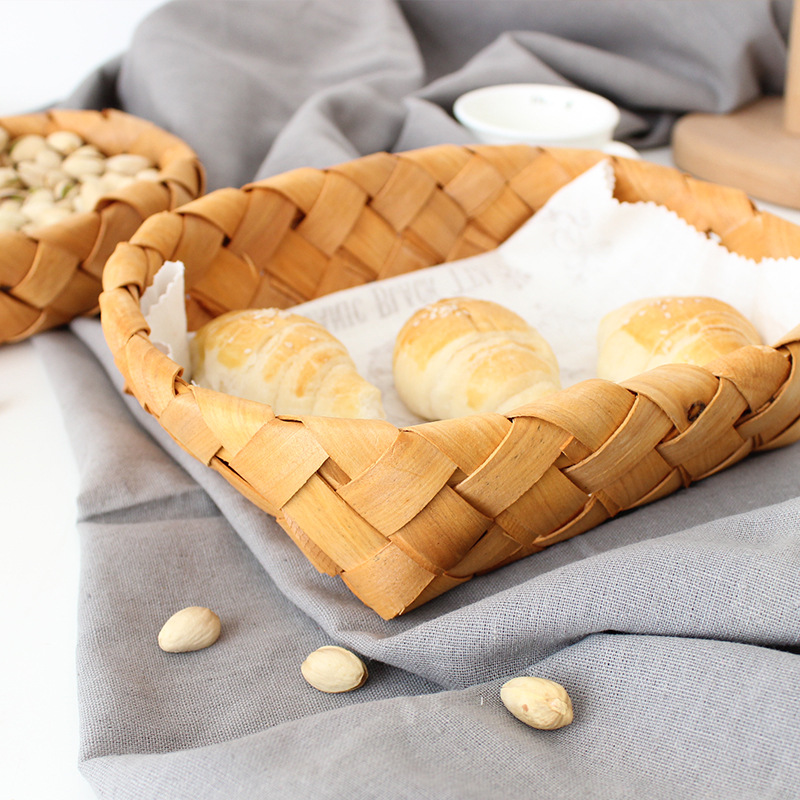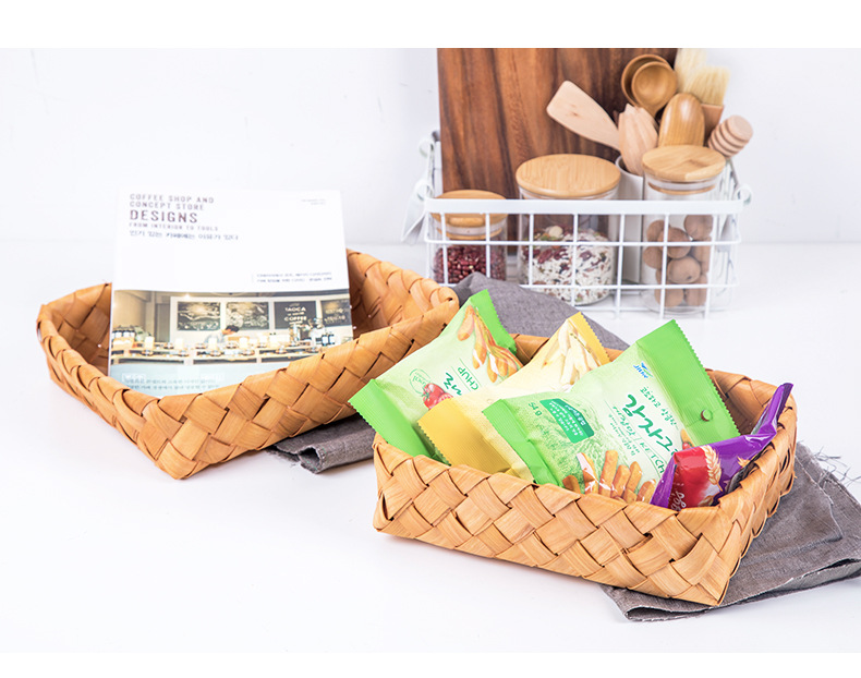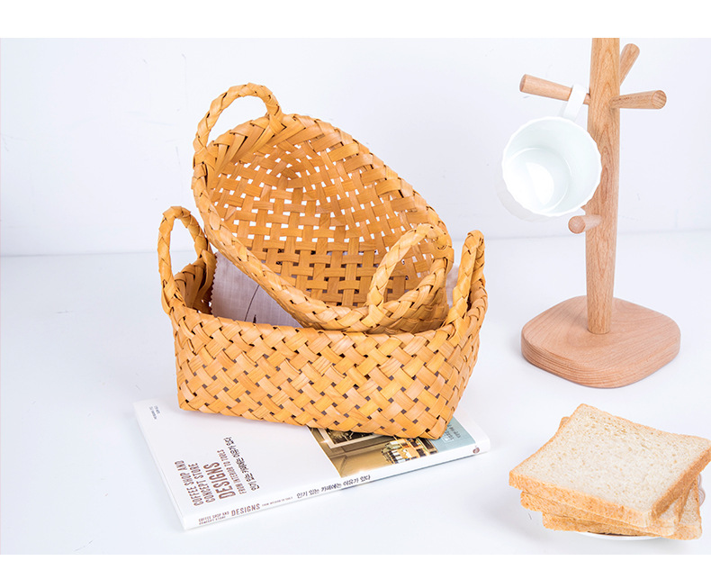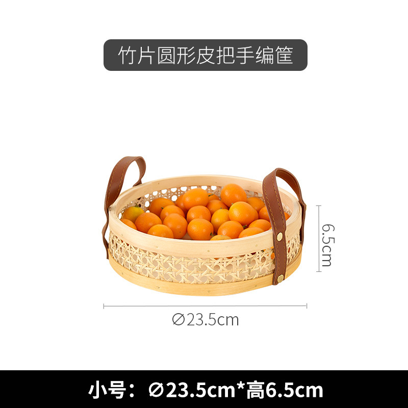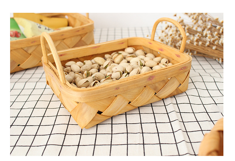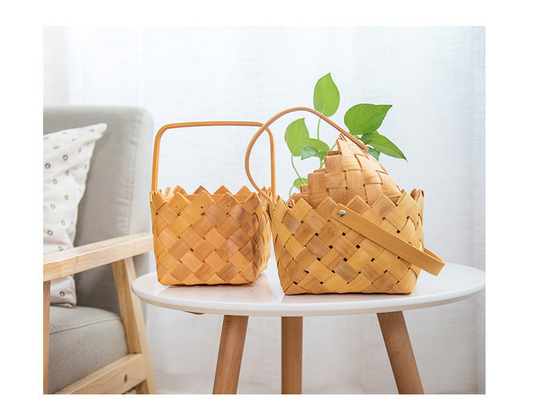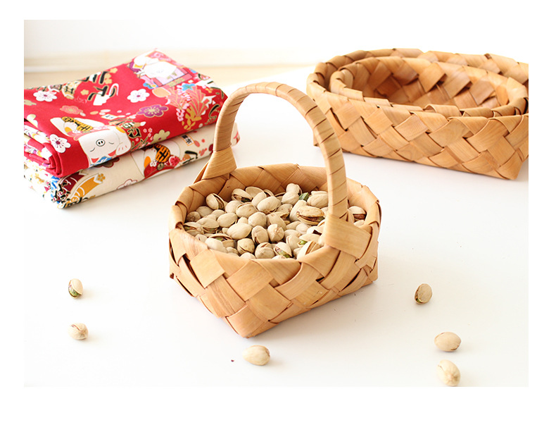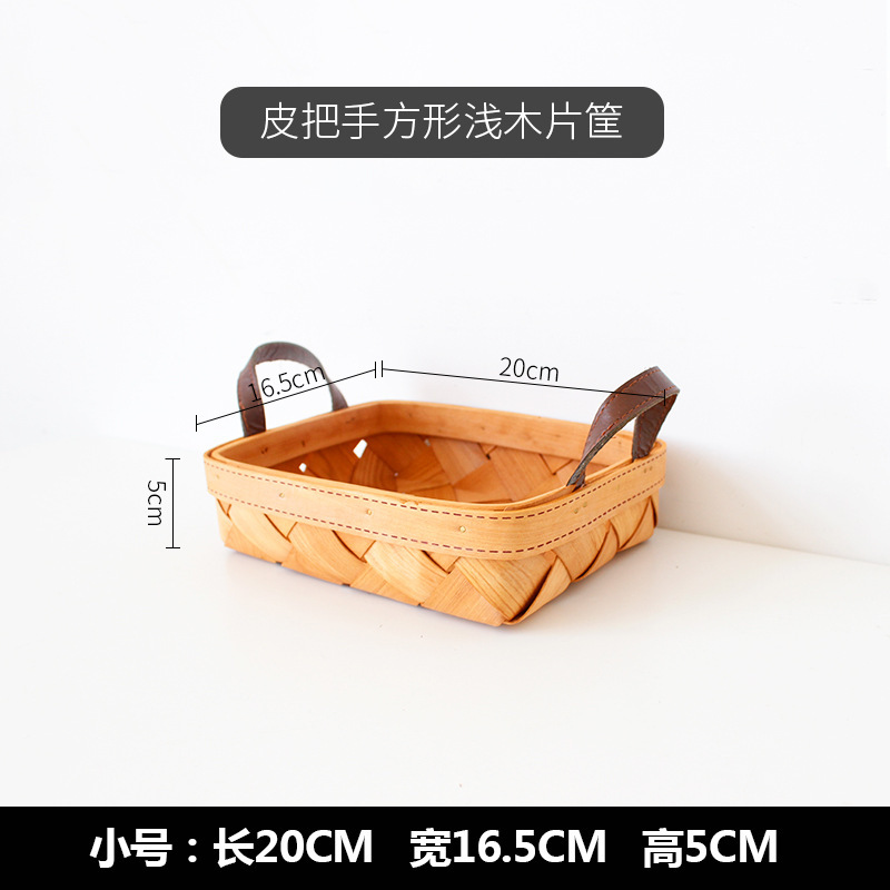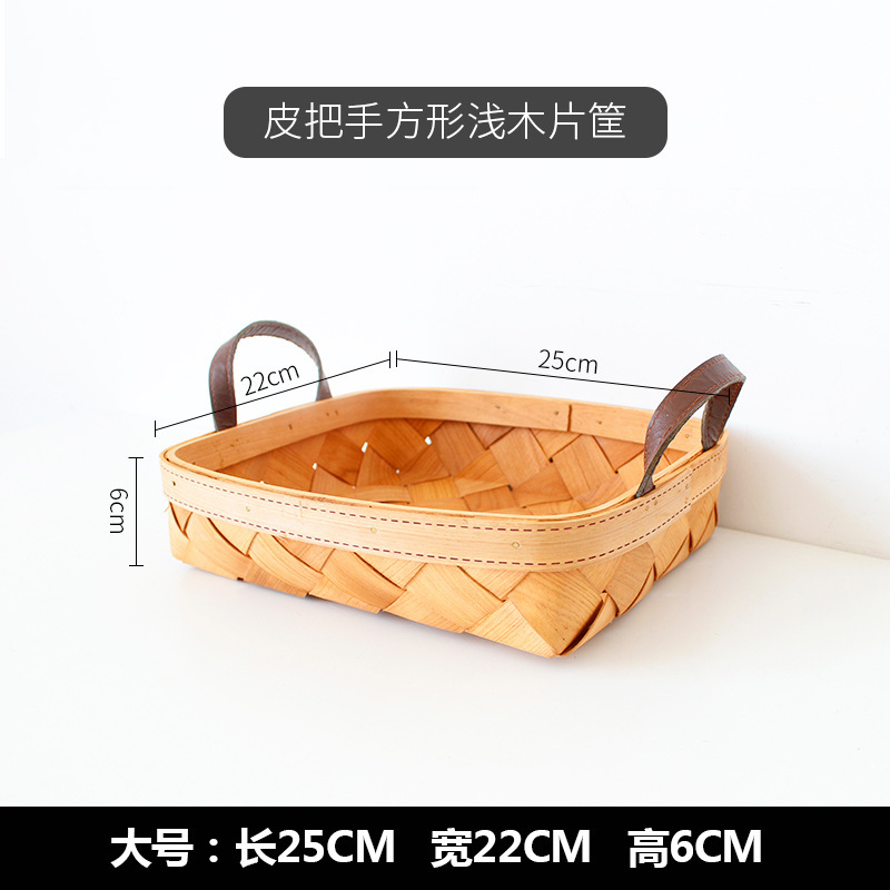 leather handle square shallow wood piece basket small size