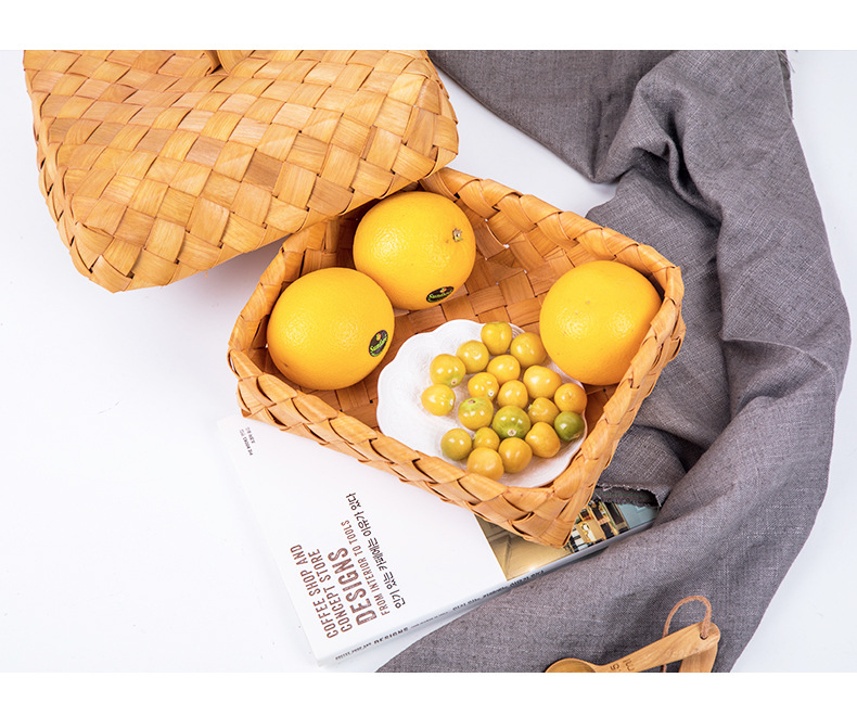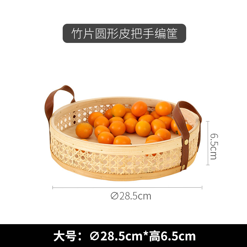 leather handle square shallow wood piece basket large