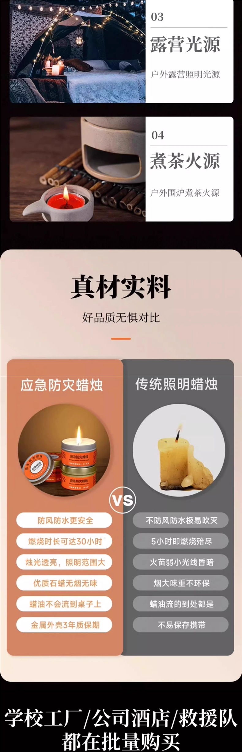 emergency disaster prevention candle [1 box] smoke-free and tasteless + windproof and waterproof