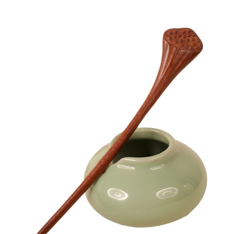 double-sided carved golden sandalwood hairpin --- lotus seedpod
