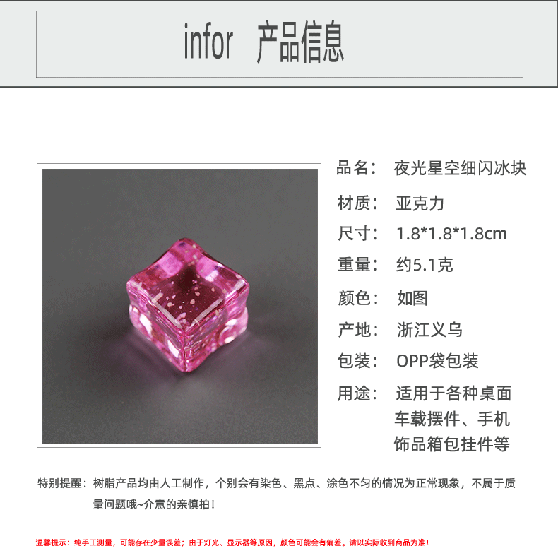 18mm luminous starry sky ice cube-2# pink
