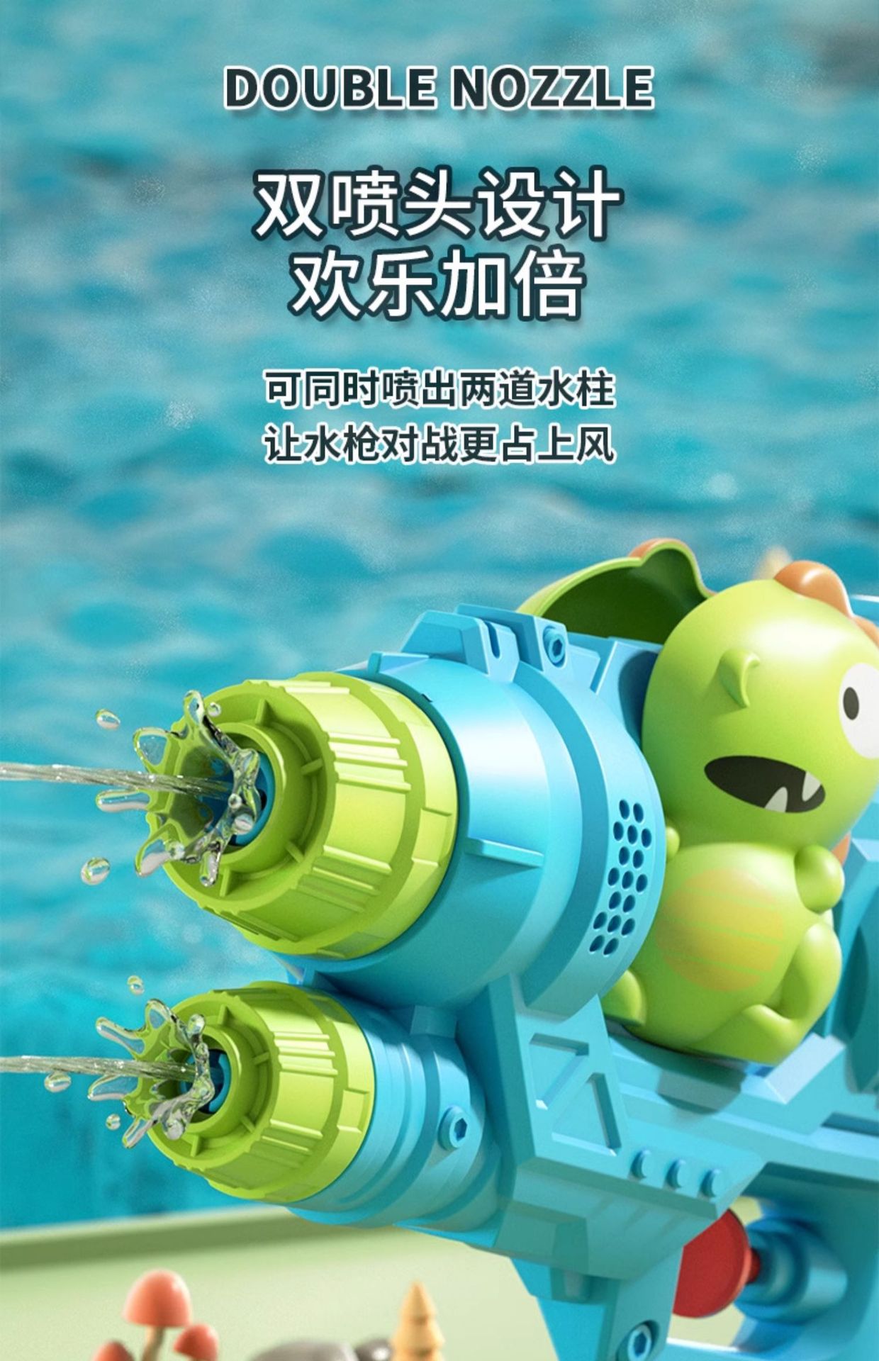 500ml [double nozzle dinosaur water gun] sky blue
