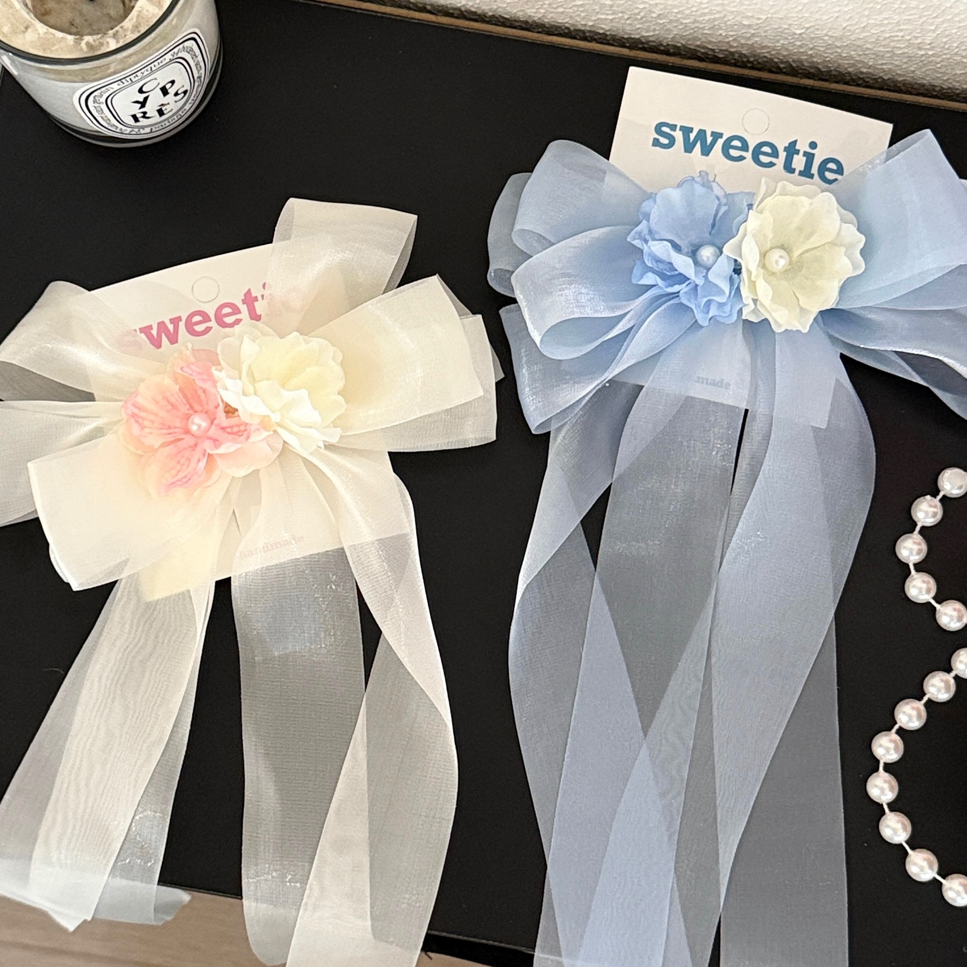 2# milky white-ribbon bow barrettes