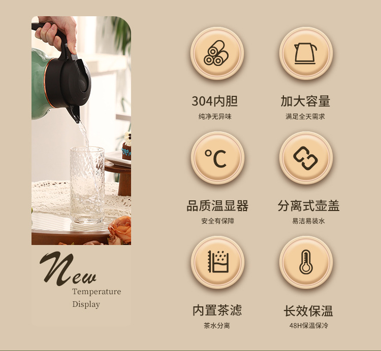 | 1.8l smart temperature display model (with tea filter | heat preservation for 36 hours) | ¥127.5 | 12780 piece available |