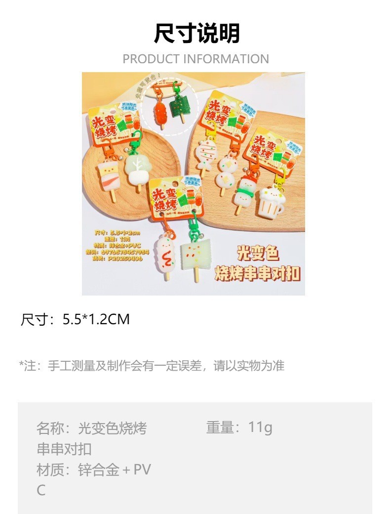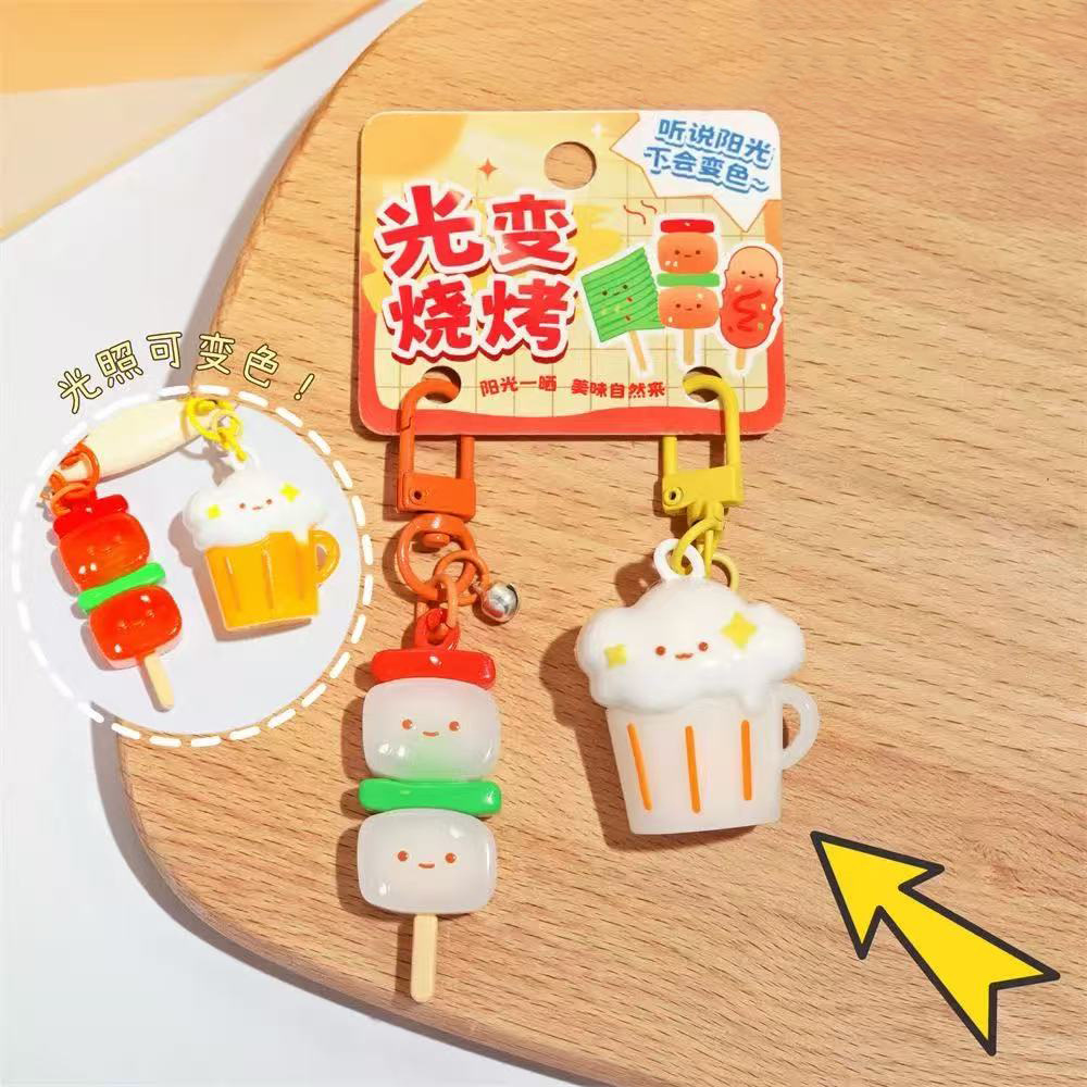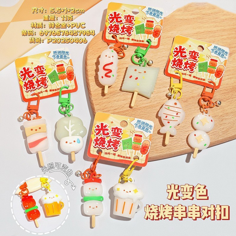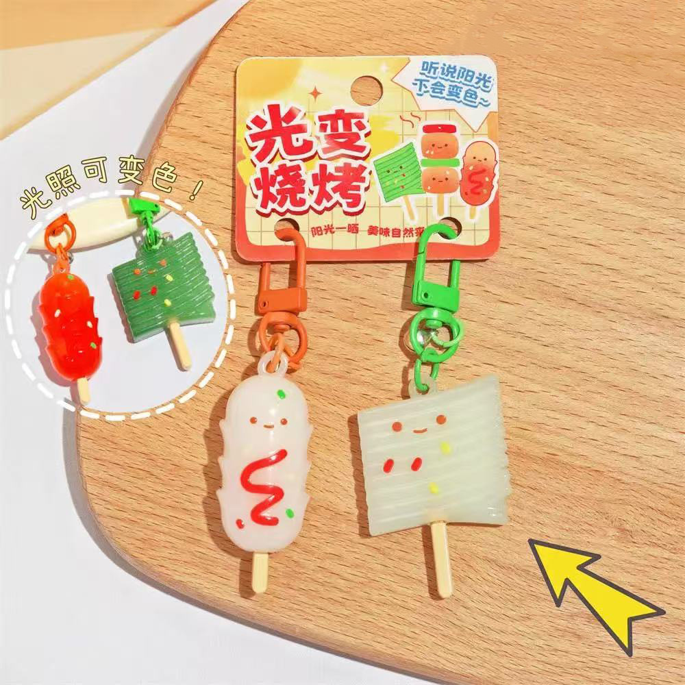 simulation bbq skewers light color changing doll keychain creative pair outfit girlfriends couple backpack pendant small gift