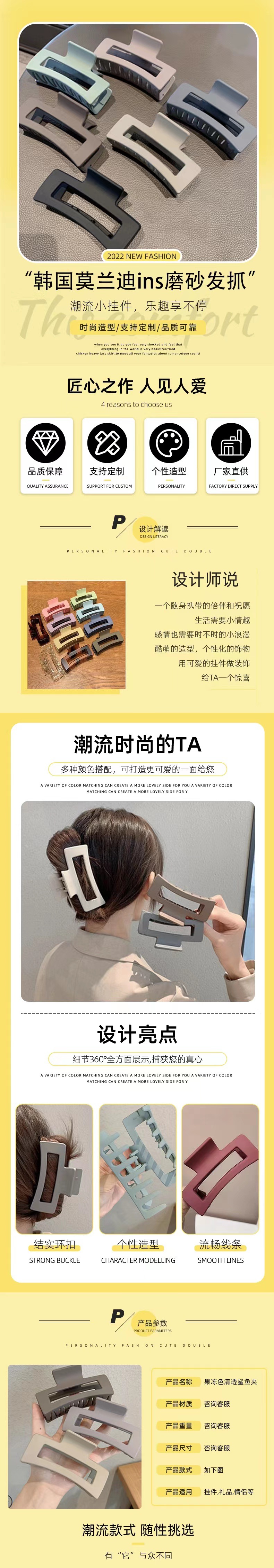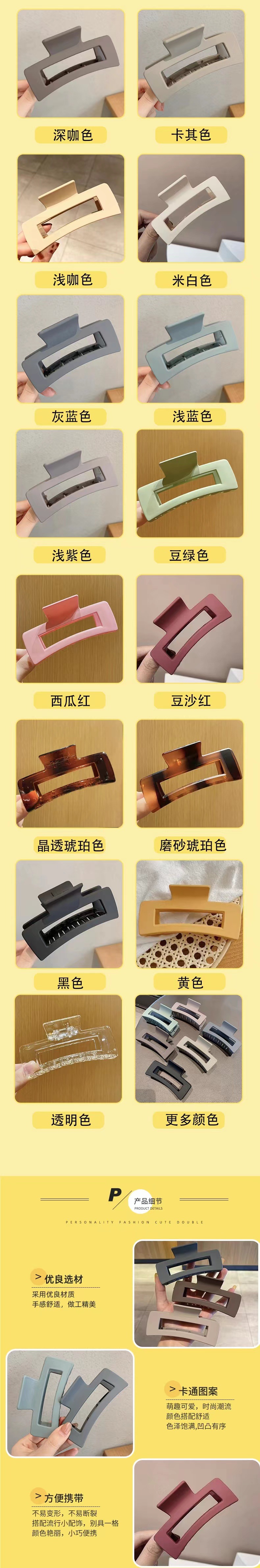 simple graceful frosted hair clip hair claw square back head high sense shark clip grip large hairpin headdress
