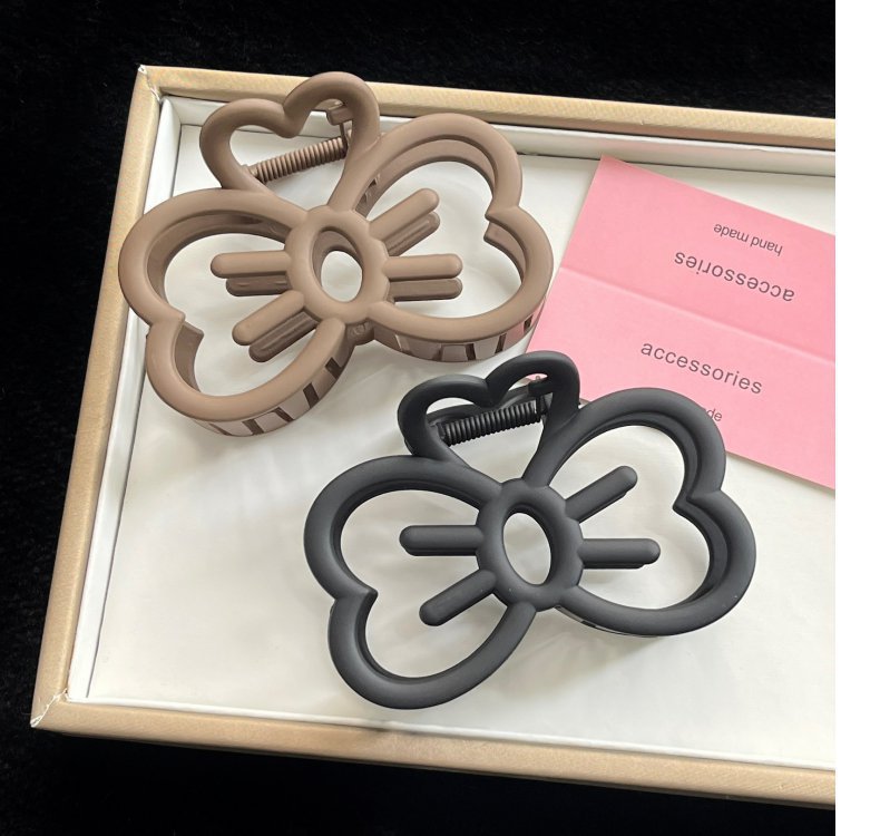 beige hollow bow claw clip