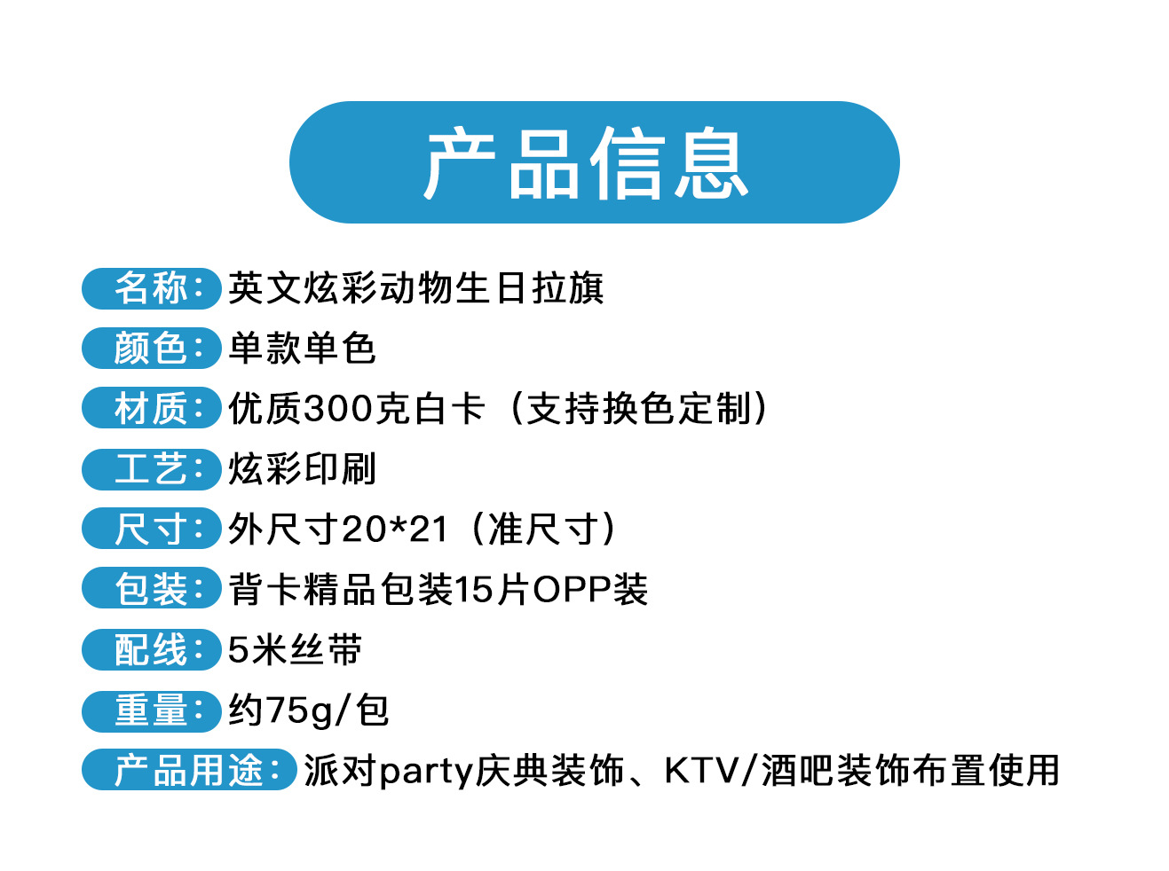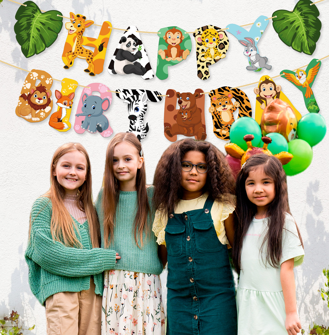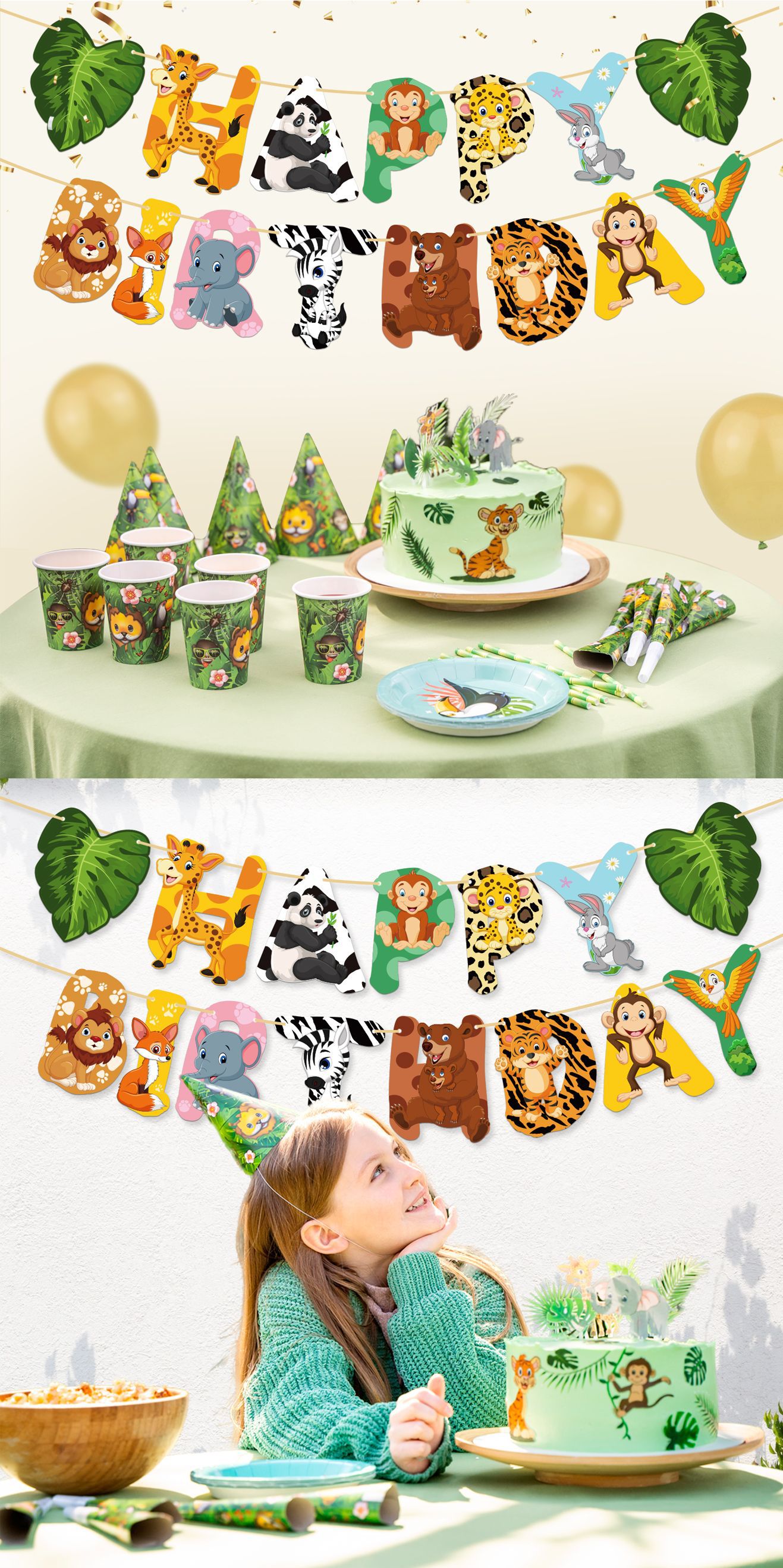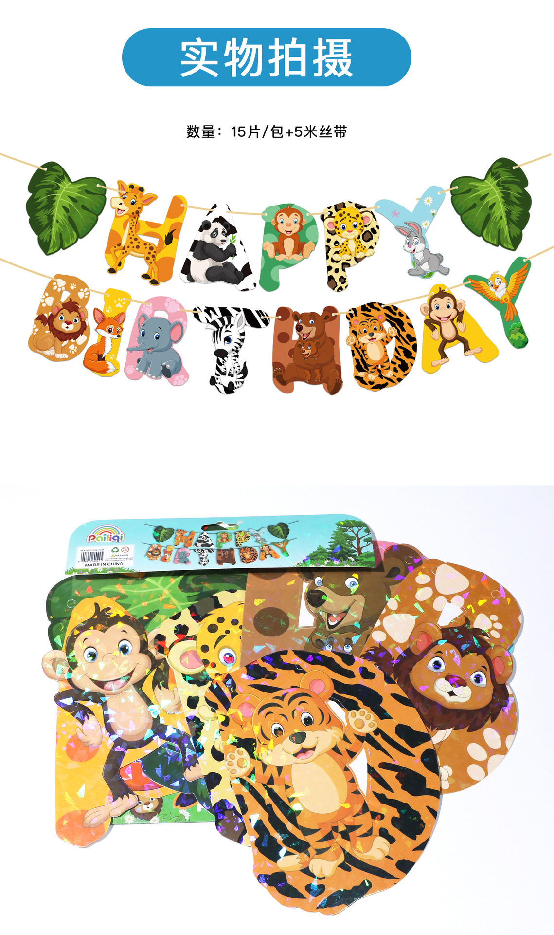 Product Name: Bright Color Animal Birthday Banners and Flags