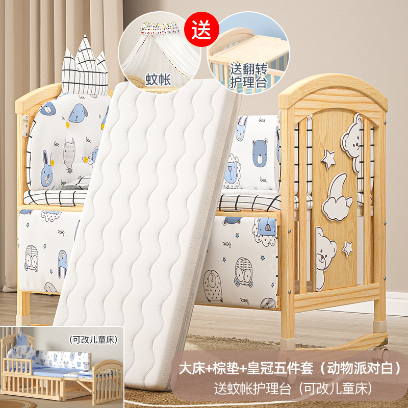 big bed + cocoanut matting + bed fence five-piece set (animal party white)