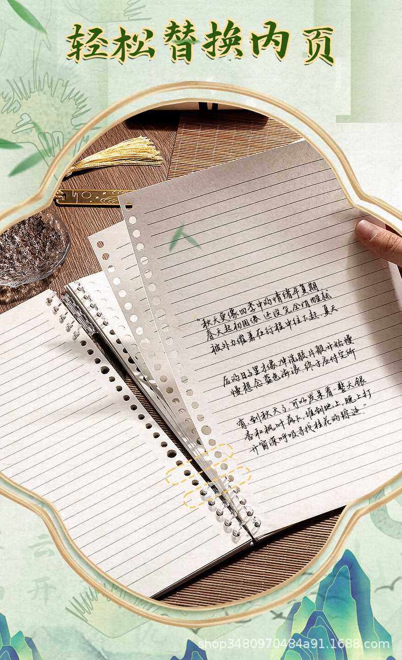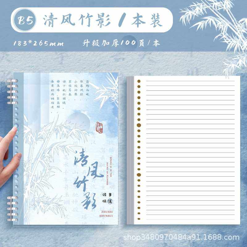 b5 horizontal line loose spiral notebook-breeze bamboo shadow