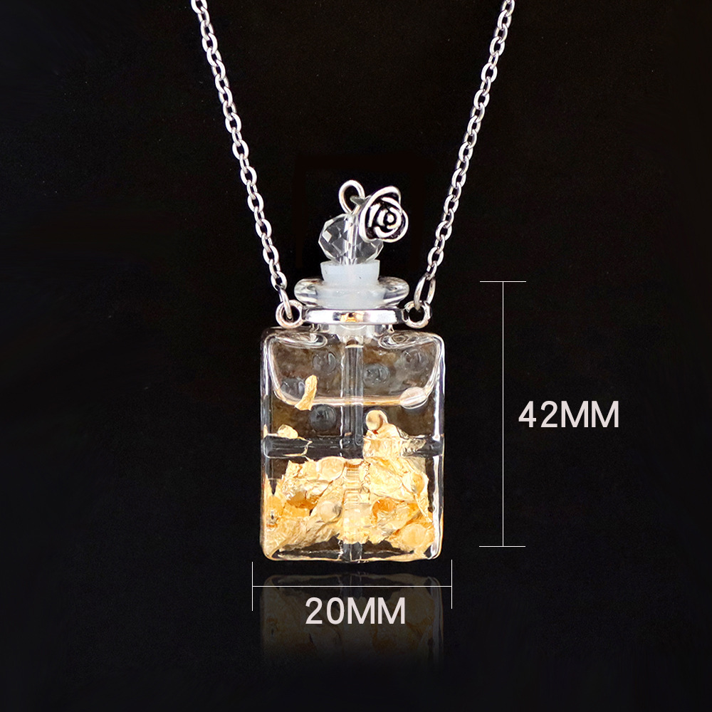 transparent square bottle glass necklace (sealed leak-proof plug + gold foil)