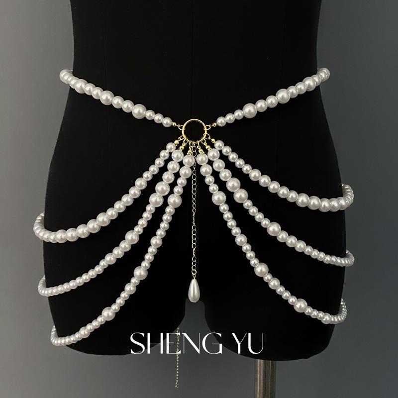 fairy pearl multi-layer tassels waist chain