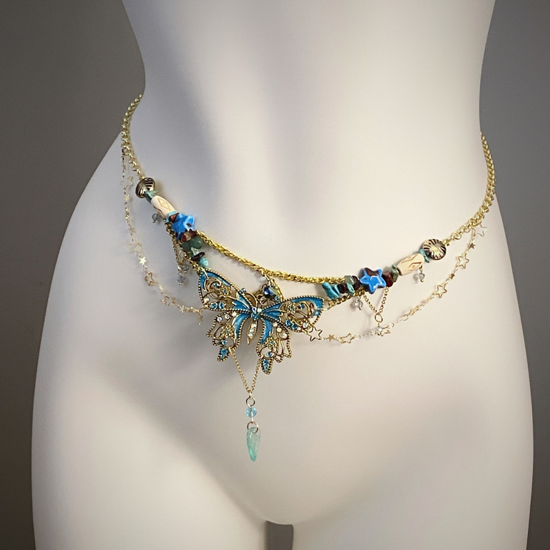 retro blue butterfly waist chain