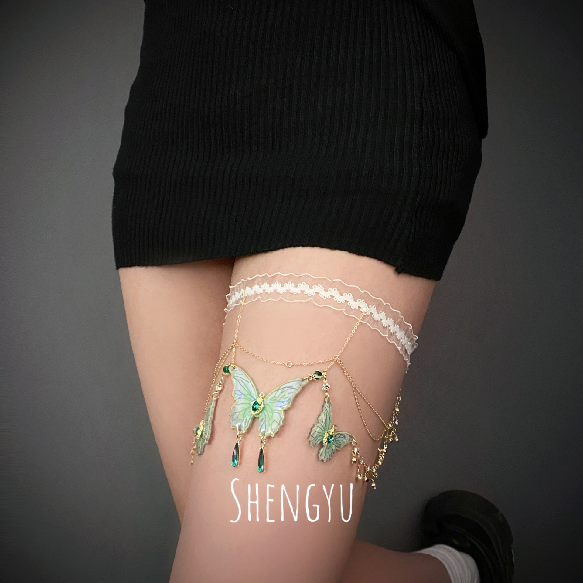 green butterfly leg bracelet