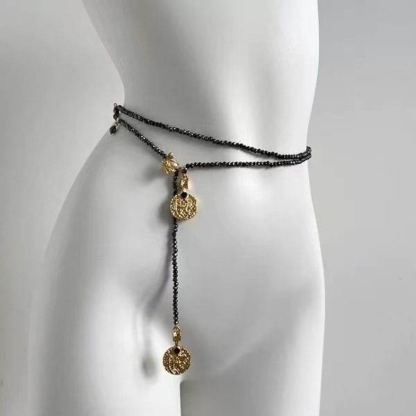 black beaded metal waist chain