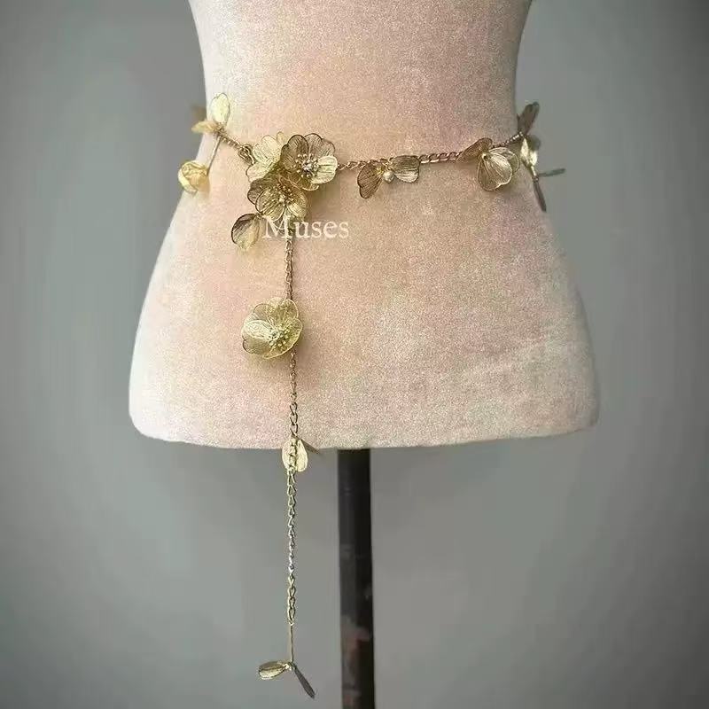 gold metal flower waist chain