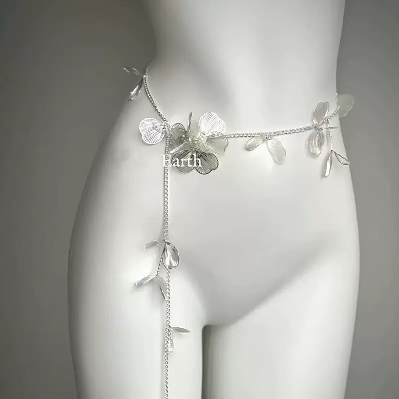 silver metal flower waist chain