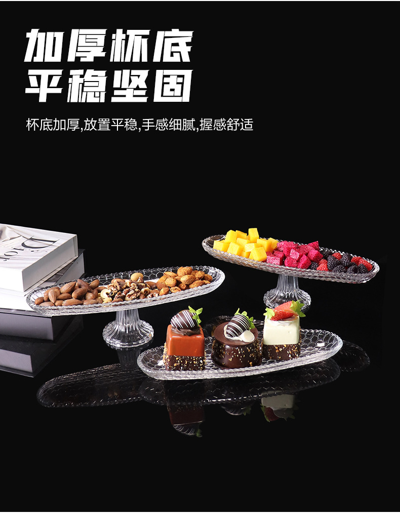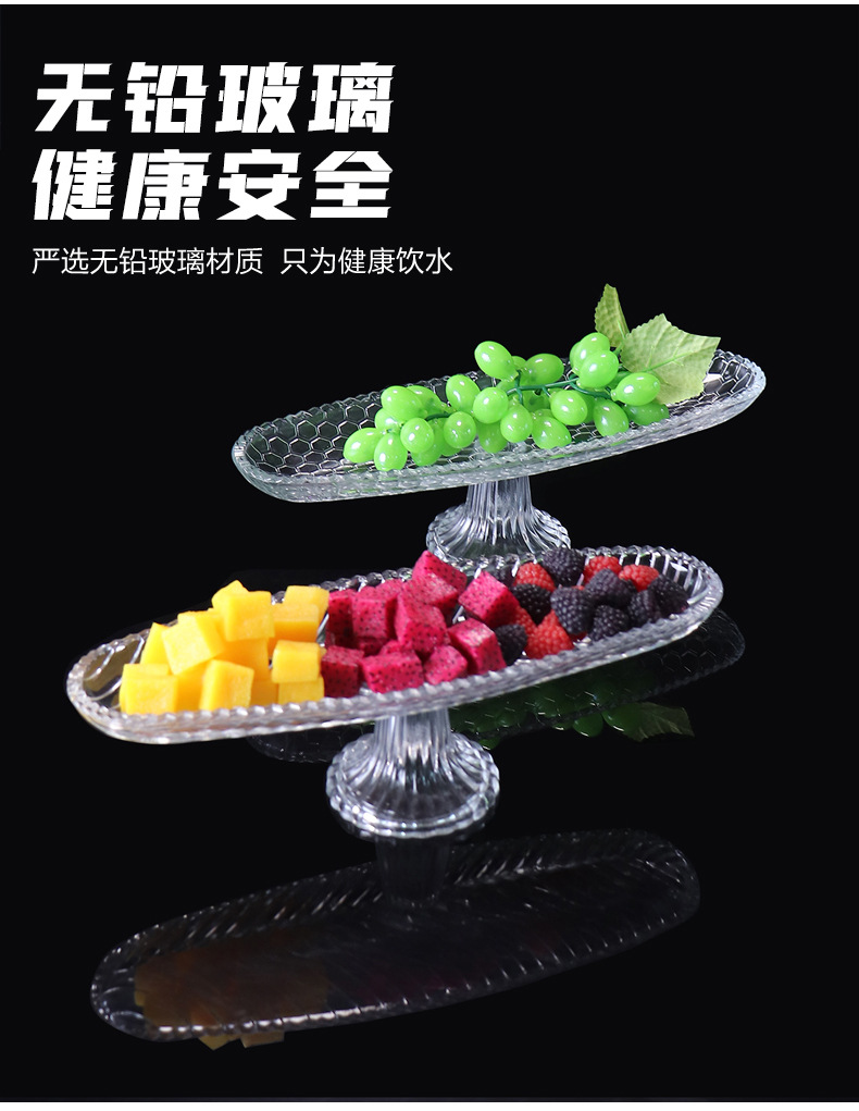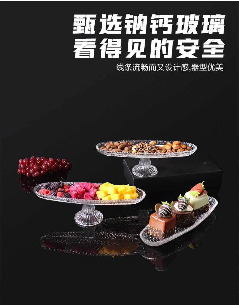 fruit plate high-grade affordable luxury style glass transparent plate with base living room coffee table household dried fruit and candy tray