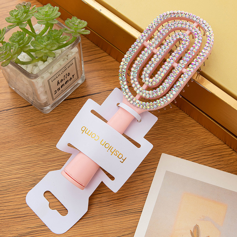 pink bone comb with diamond + hanging card