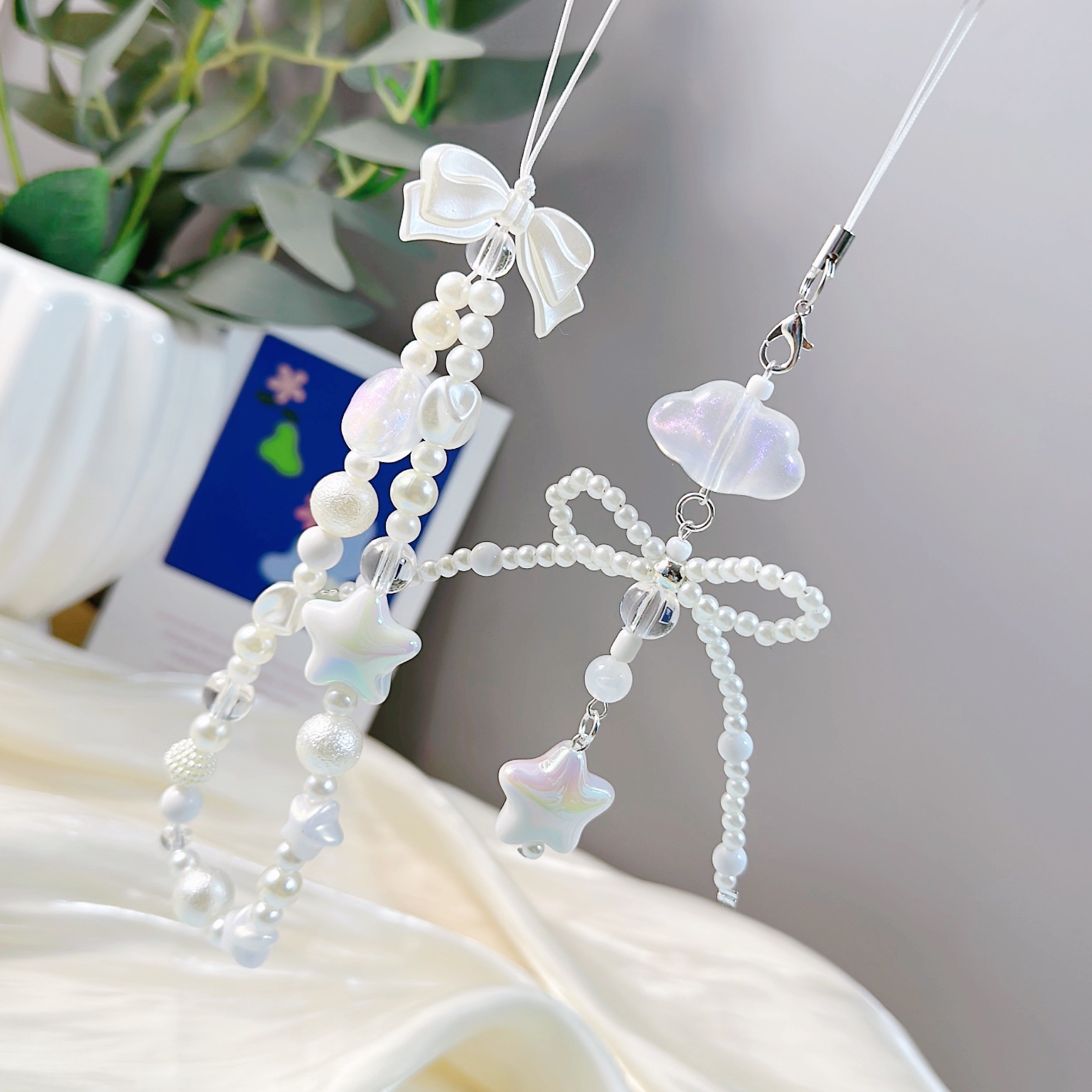 [floating clouds and stars] pearl bow