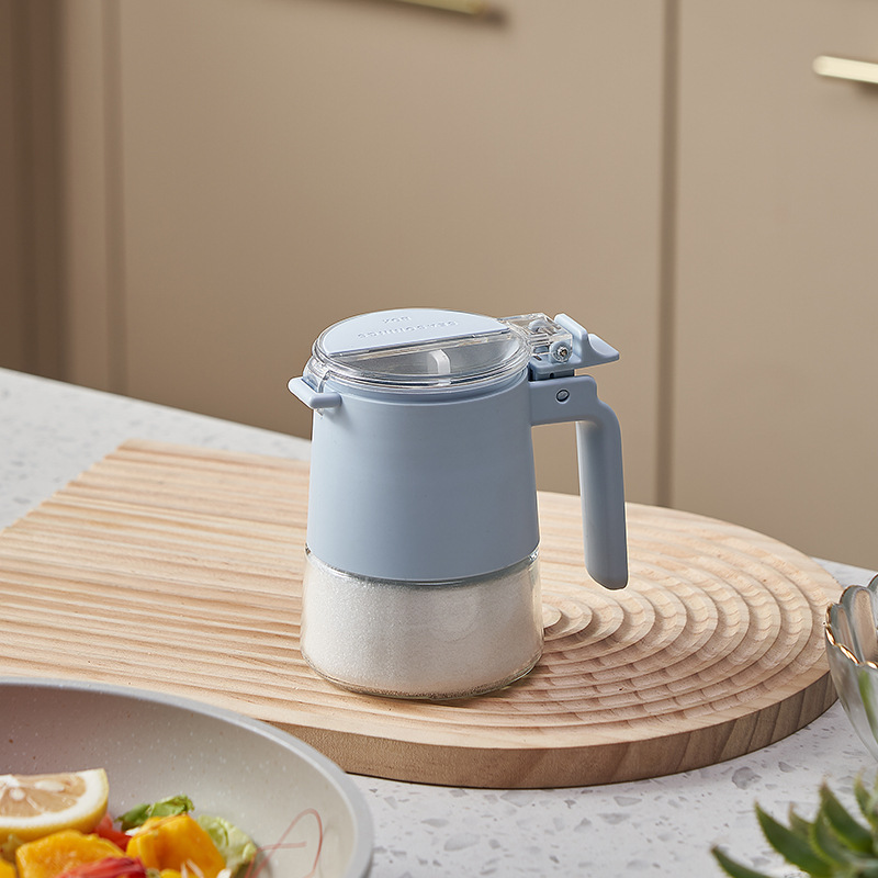 sealed flip glass seasoning cylinder 330ml-blue