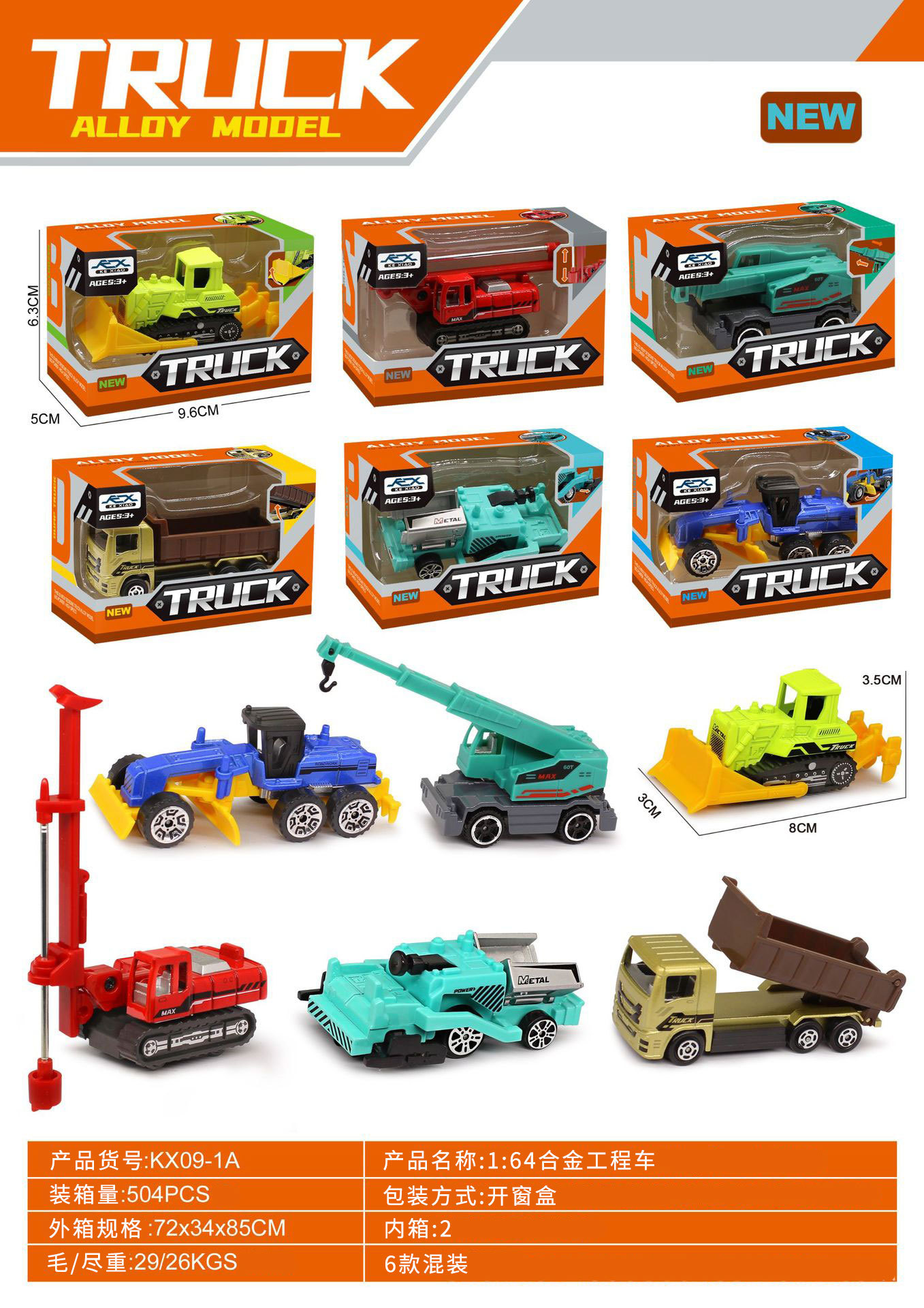 color engineering vehicle (6 models/single random delivery)