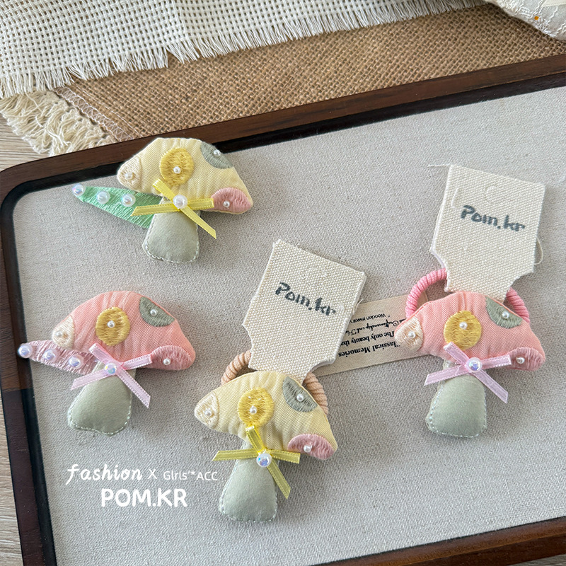[4] beige mushroom barrettes