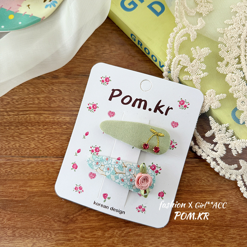 [6] water drop cherry rhinestone hairpin
