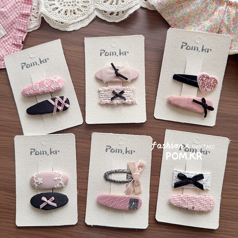 [4] square lace black bow barrettes
