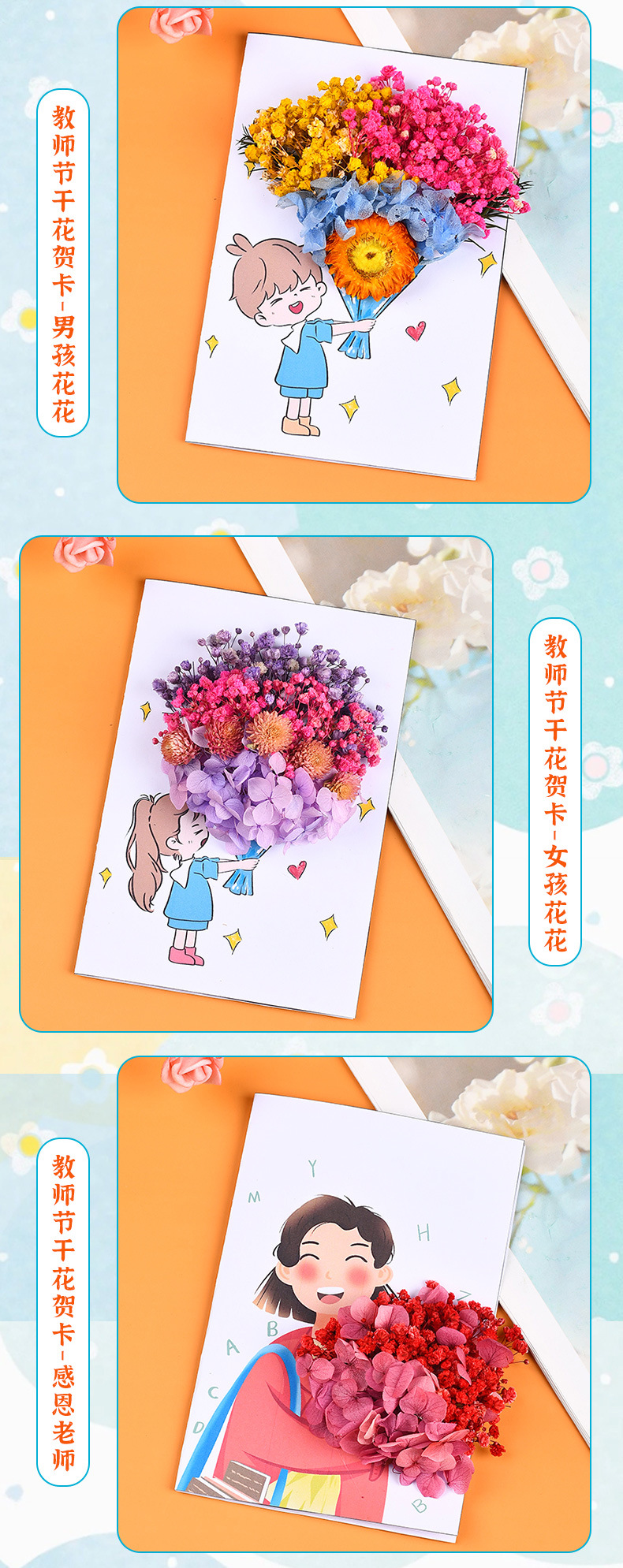 teacher's day dried flower greeting card-boy flower (gift bag)