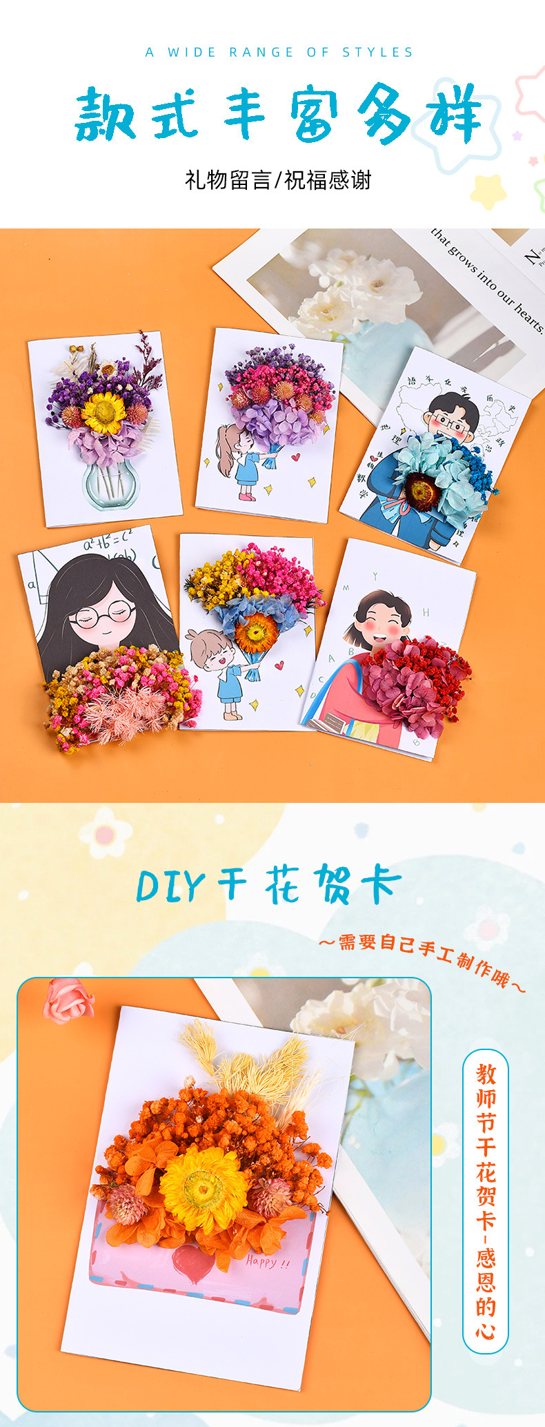 teacher's day dried flower greeting card-girl flower (gift bag)
