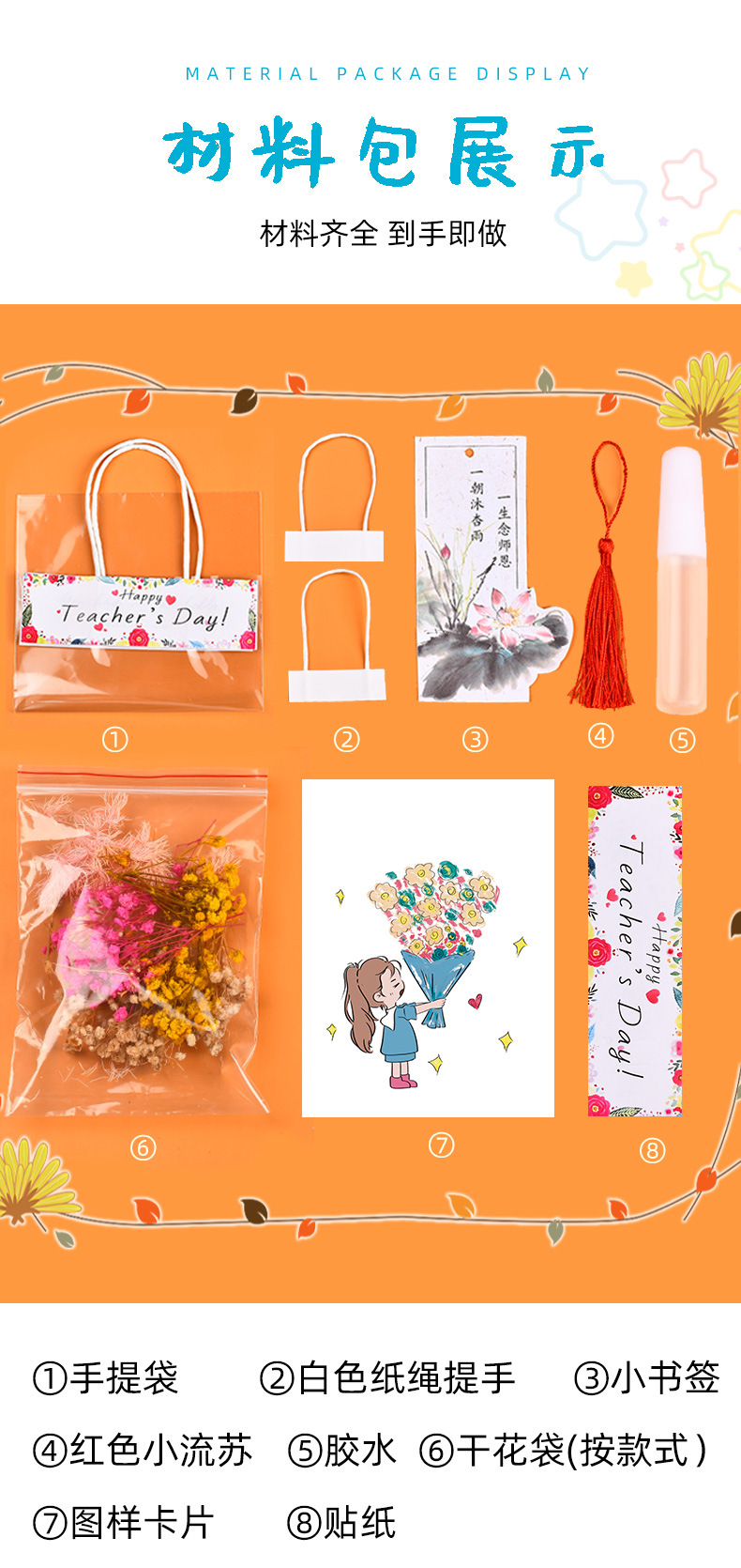 teacher's day dried flower greeting card-teacher's hard work (gift bag)