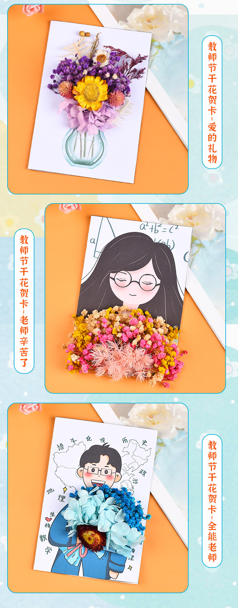 teacher's day dried flower greeting card-all-round teacher (gift bag)